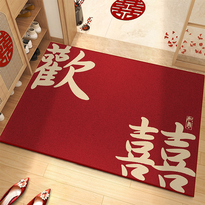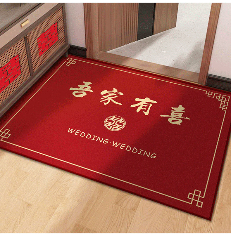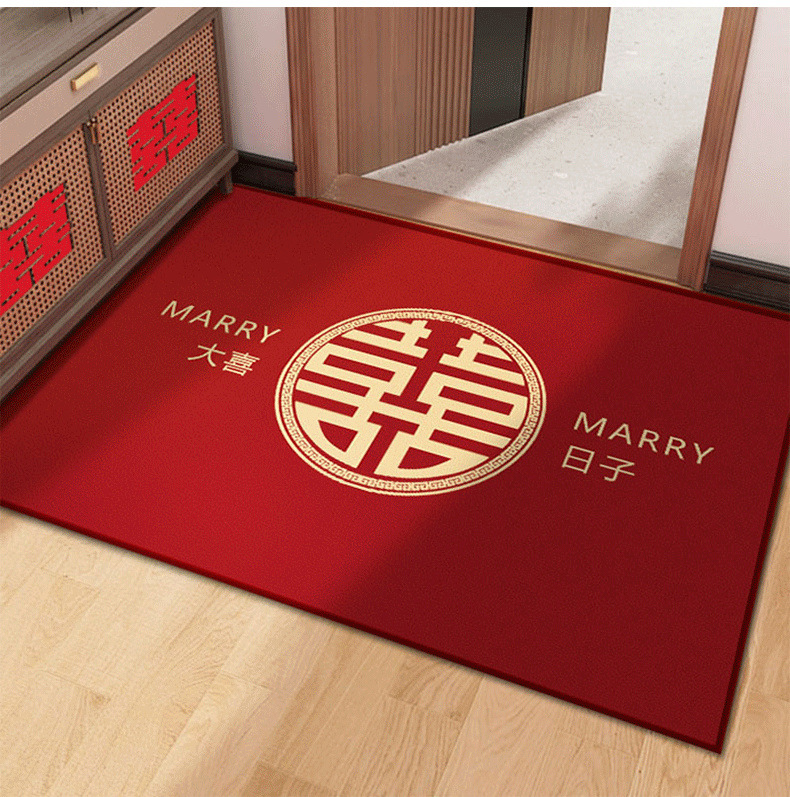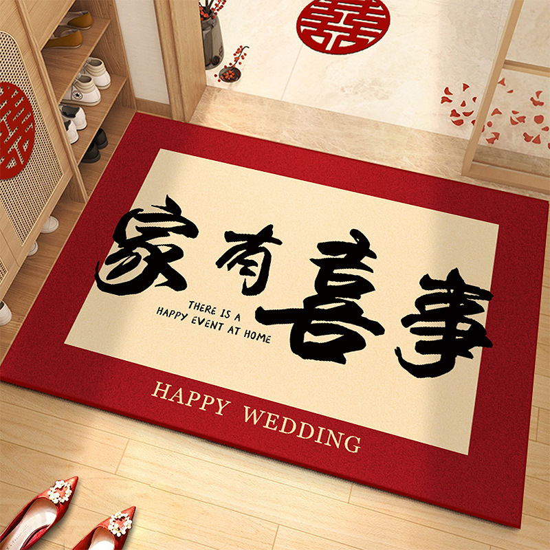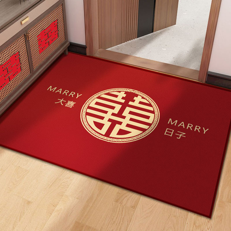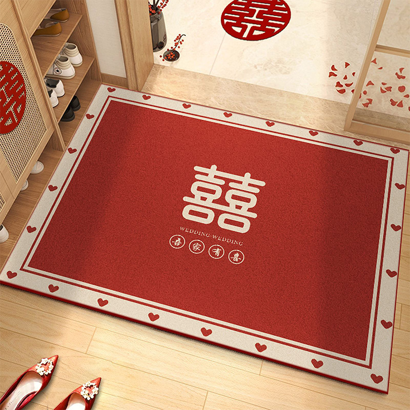 행복한 단어 레드 카펫 문 매트 TPR 벨기에 벨벳 웨딩 매트 새로운 웨딩 카펫 침실 매트