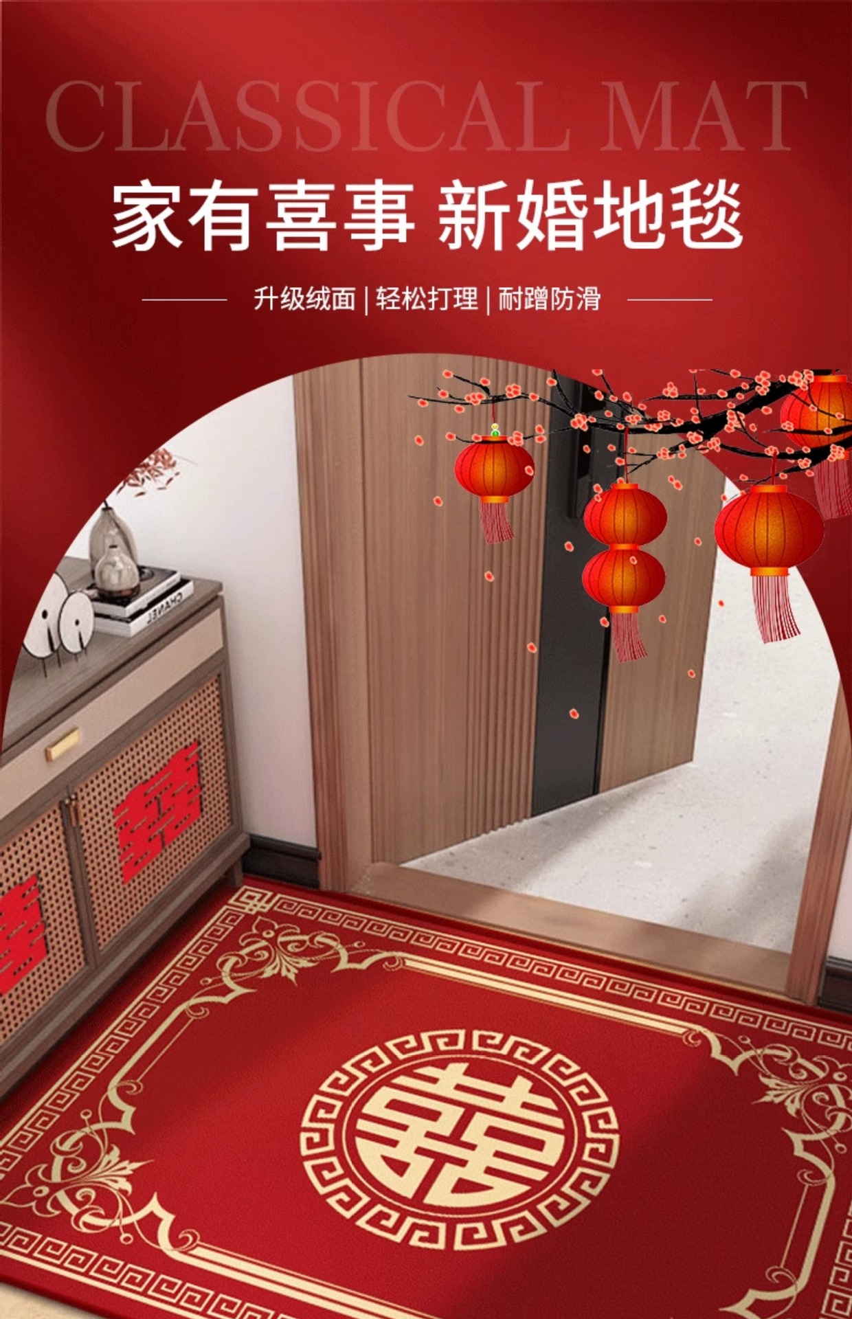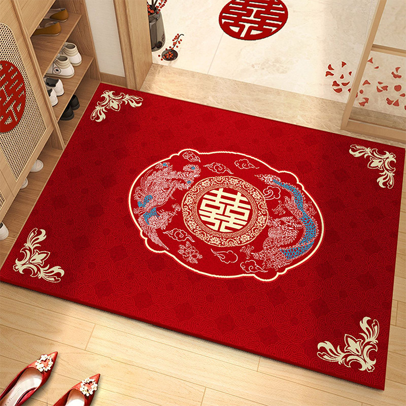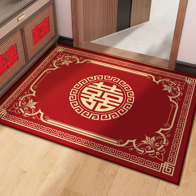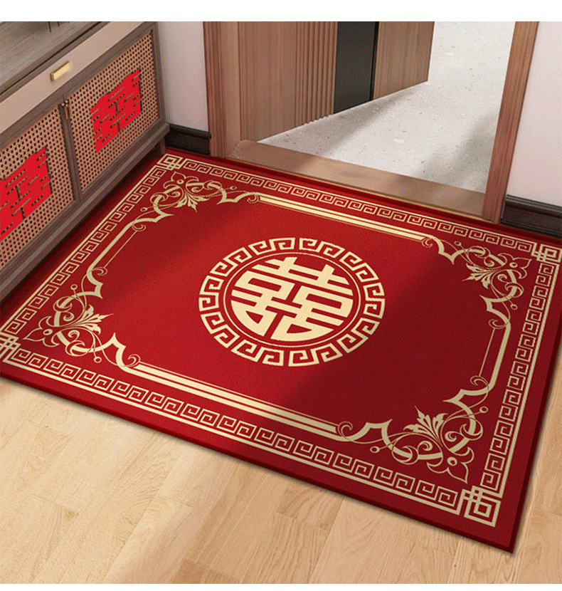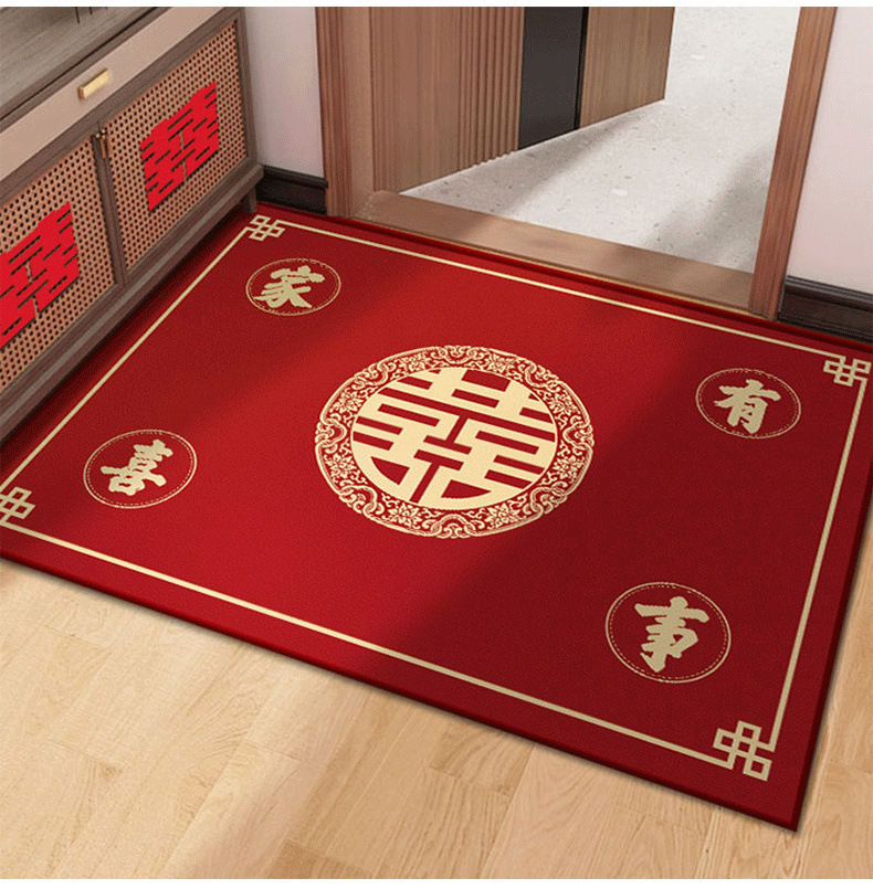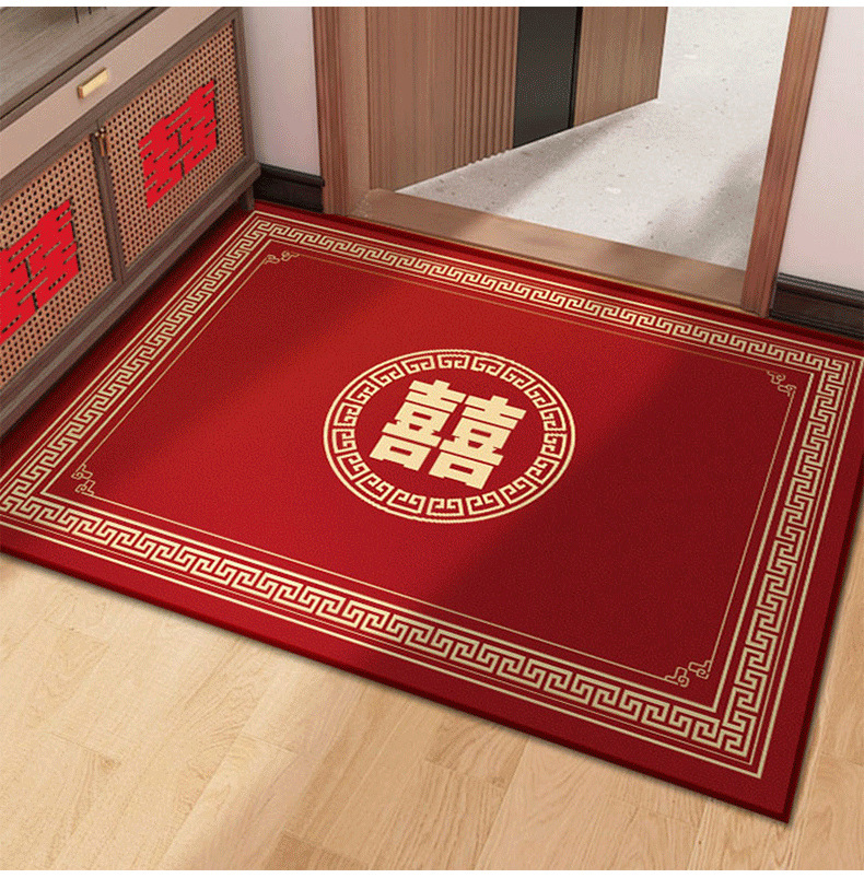 행복한 단어 레드 카펫 문 매트 TPR 벨기에 벨벳 웨딩 매트 새로운 웨딩 카펫 침실 매트