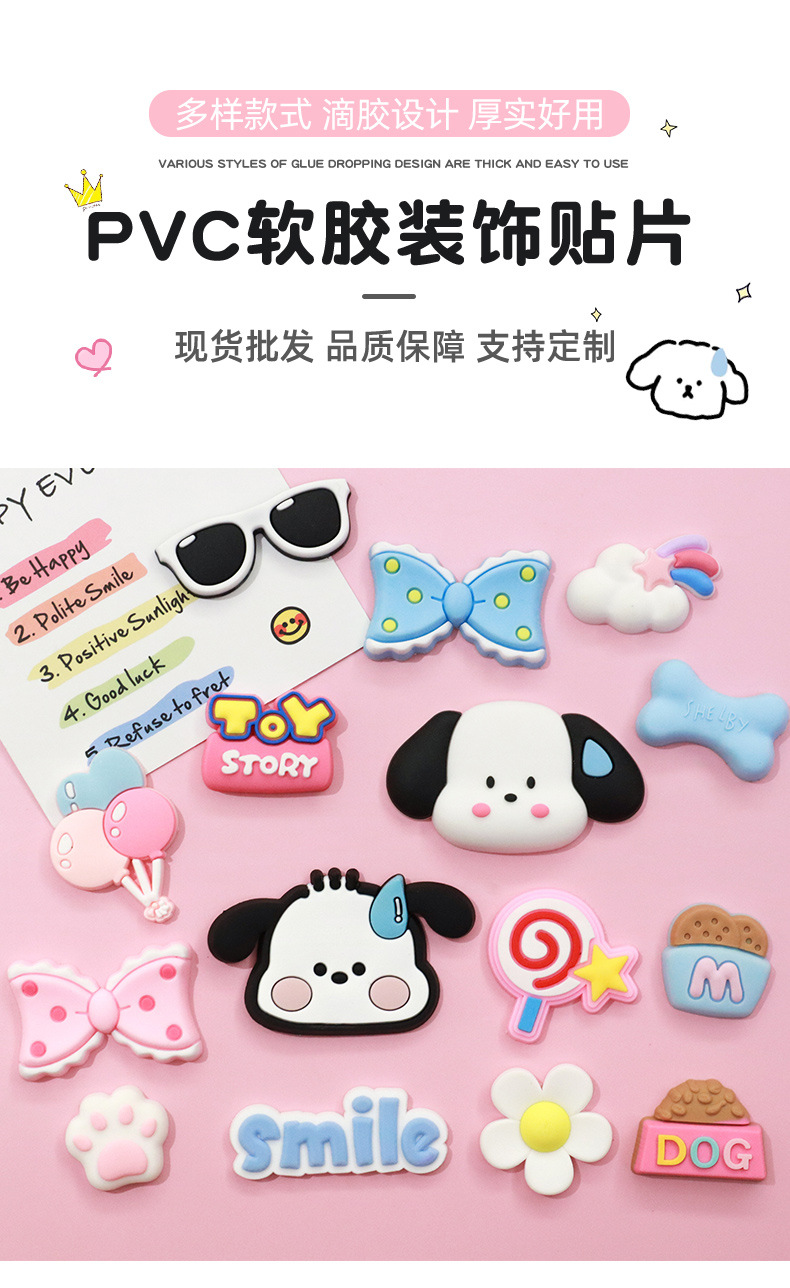 만화 스몰 사이즈 땀 강아지 DIY 부드러운 고무 액세서리 PVC 패치 장식 스티커 휴대 전화 케이스 물 컵 슬리퍼 패치
