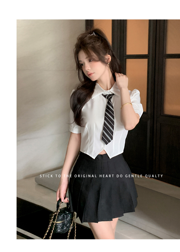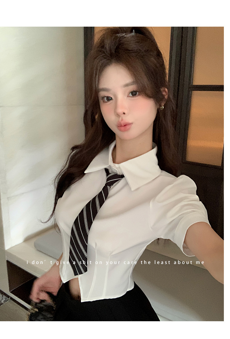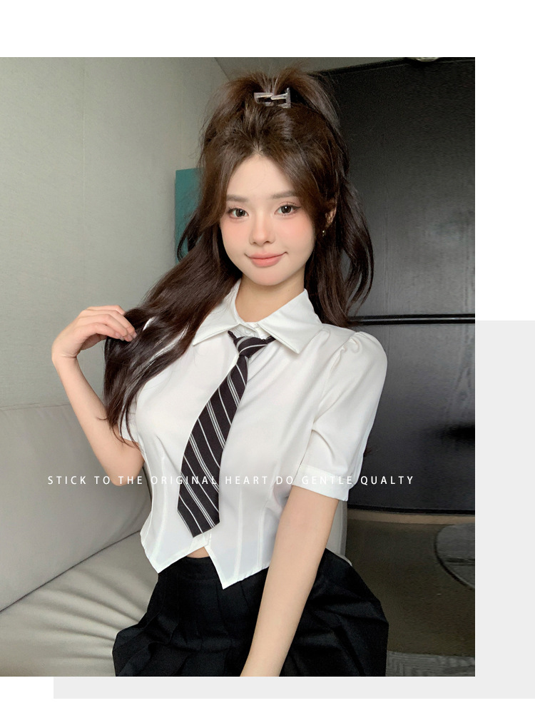 대학 스타일 웨이스트 밴드 JK 유니폼 화이트 셔츠 여성의 순수 디자인 센스 핫 걸 탑 슬림 핏 짧은 넥타이 셔츠