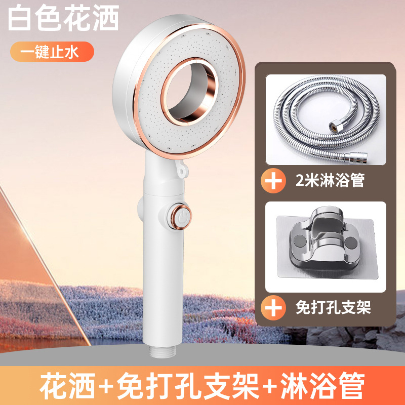 • [화이트] 도넛 3단 핸드헬드 샤워기 + 2m 샤워파이프 + 샤워홀더