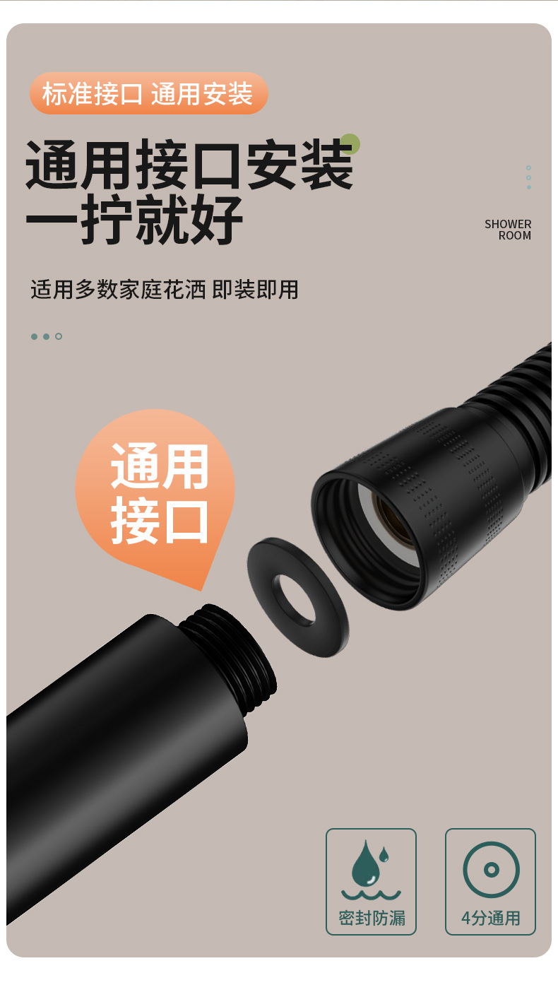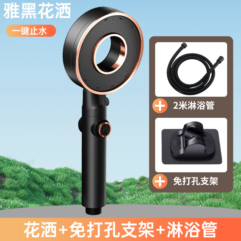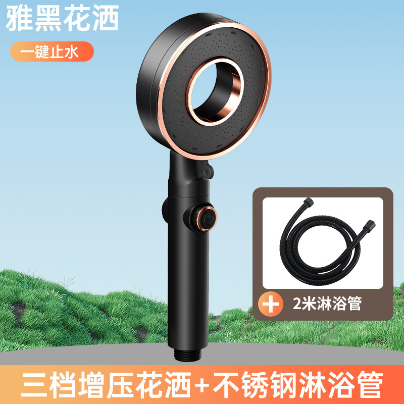 • [블랙] 도넛 3단 핸드헬드 샤워기 + 2m 샤워파이프 + 샤워홀더