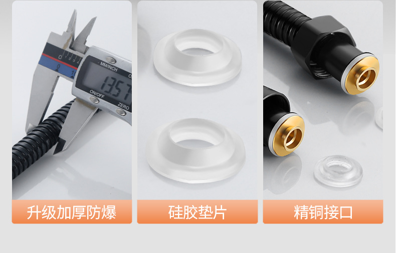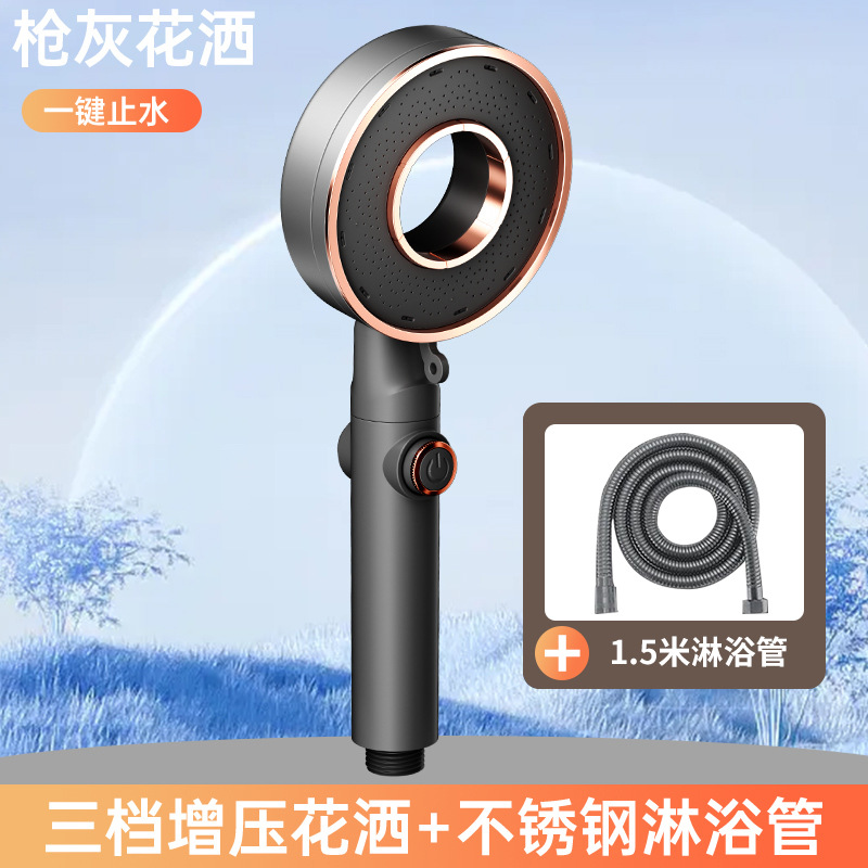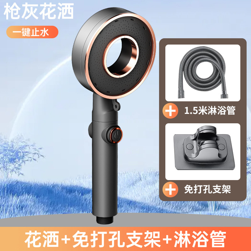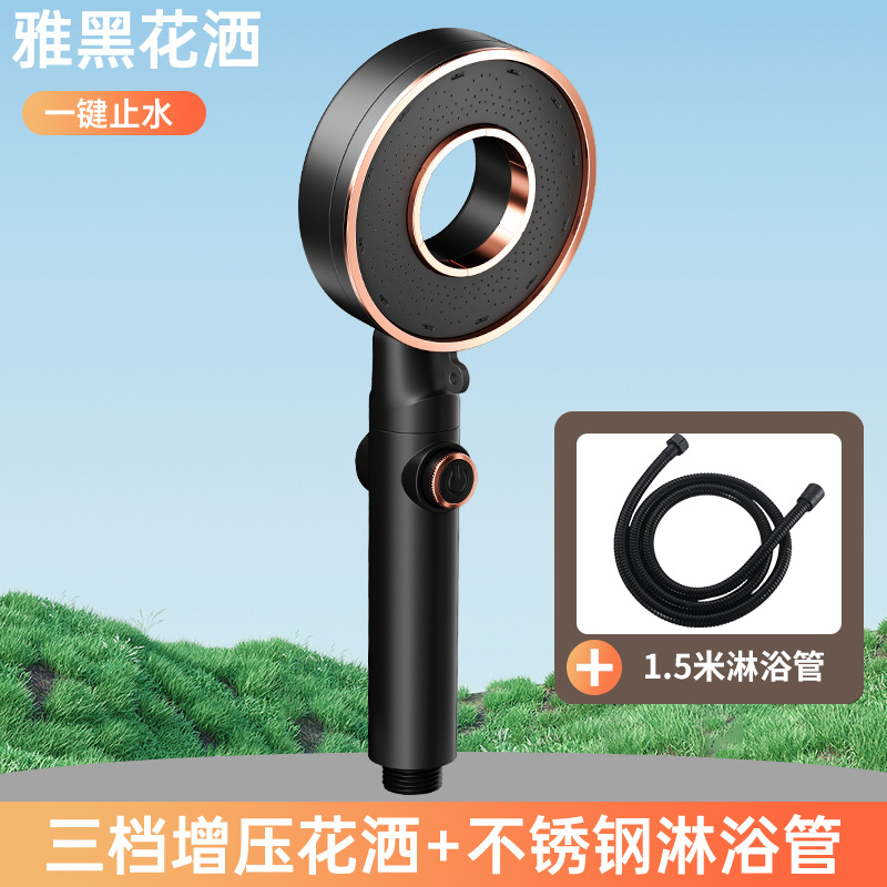 • [블랙] 도넛 3단 핸드헬드 샤워기 + 1.5m 샤워파이프 + 샤워홀더