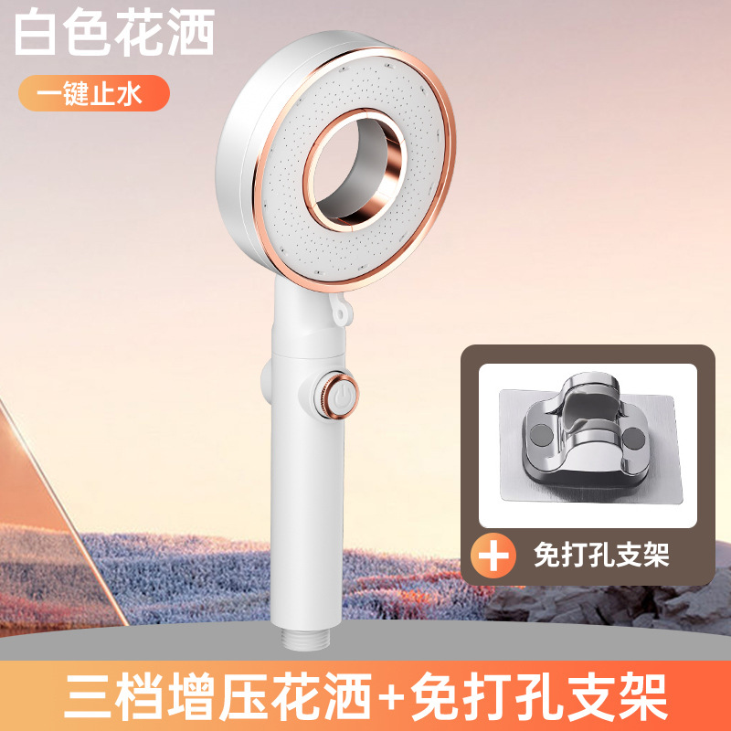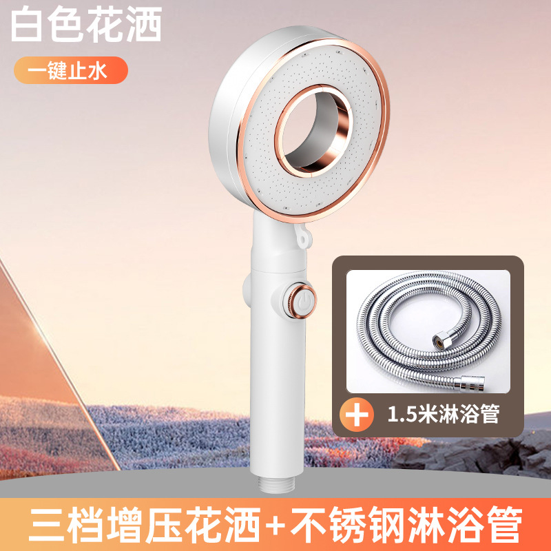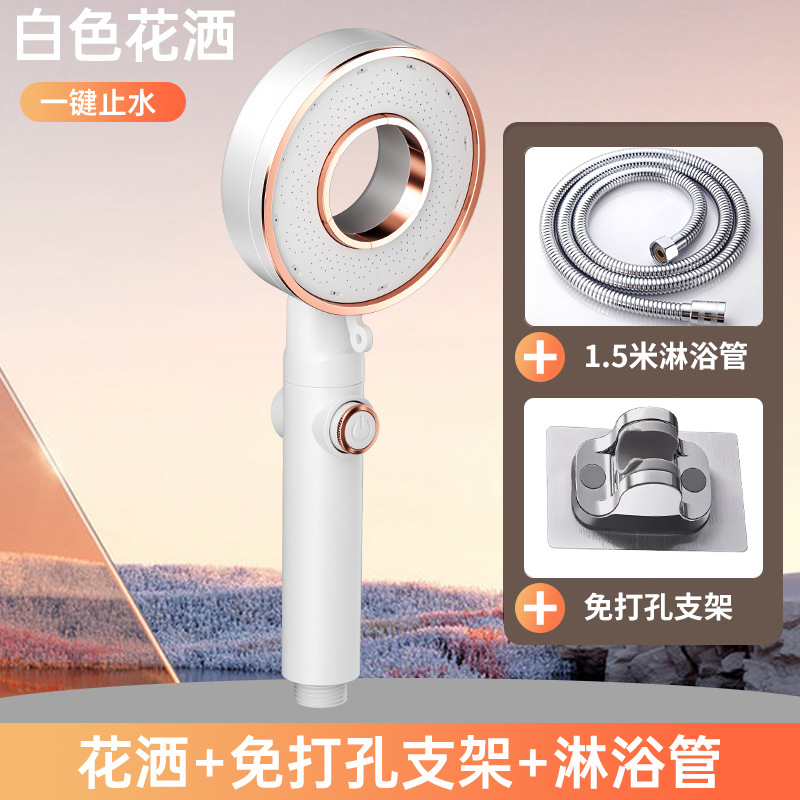 • [화이트] 도넛 3단 핸드헬드 샤워기 + 1.5m 샤워파이프 + 샤워홀더