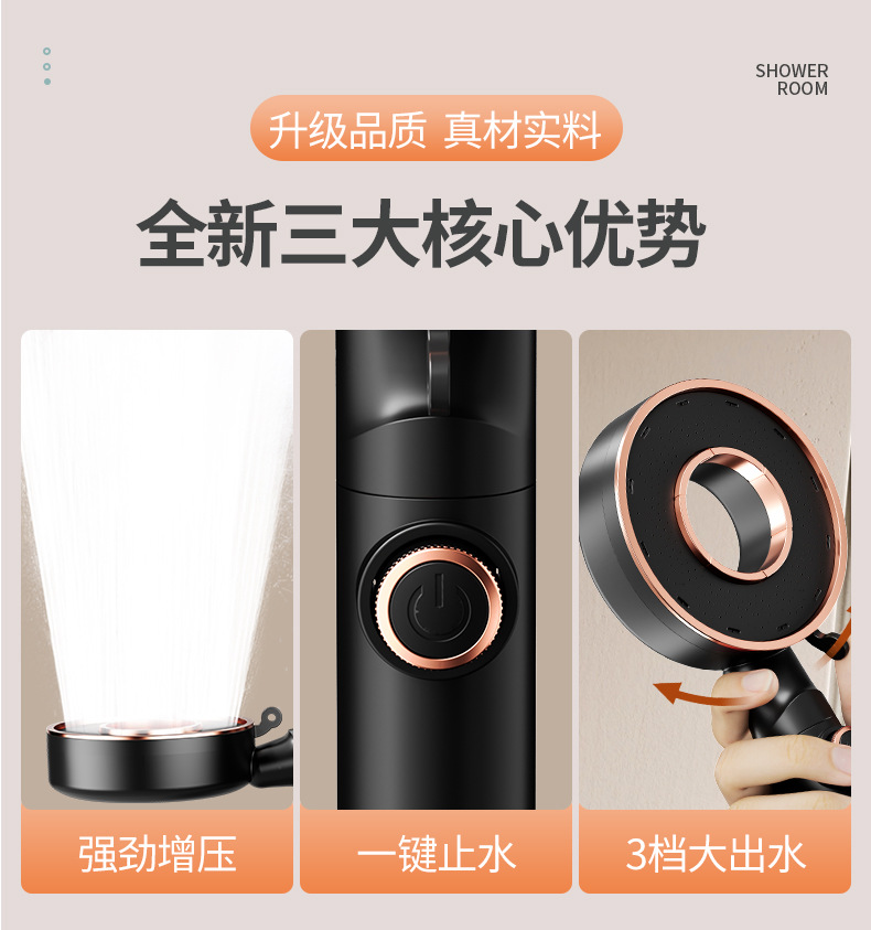 • [블랙] 도넛 3단 핸드헬드 샤워기