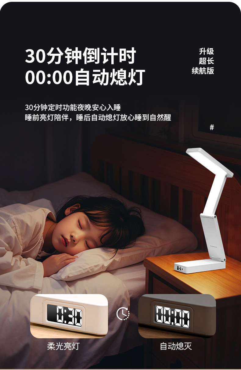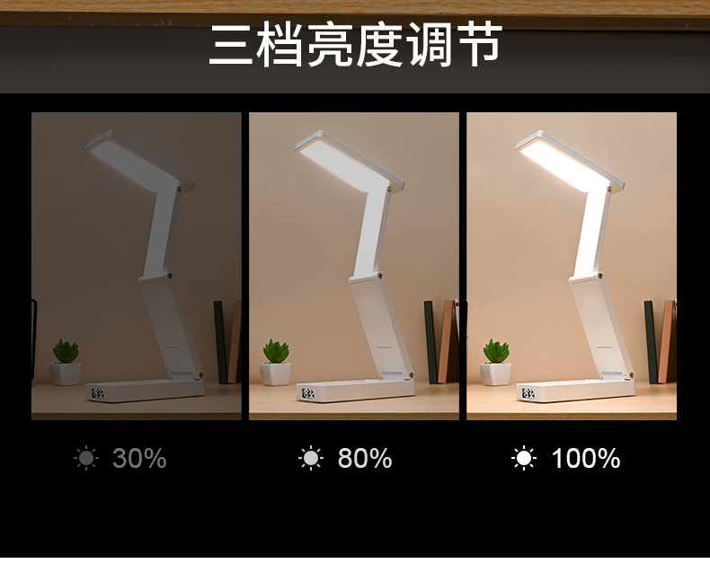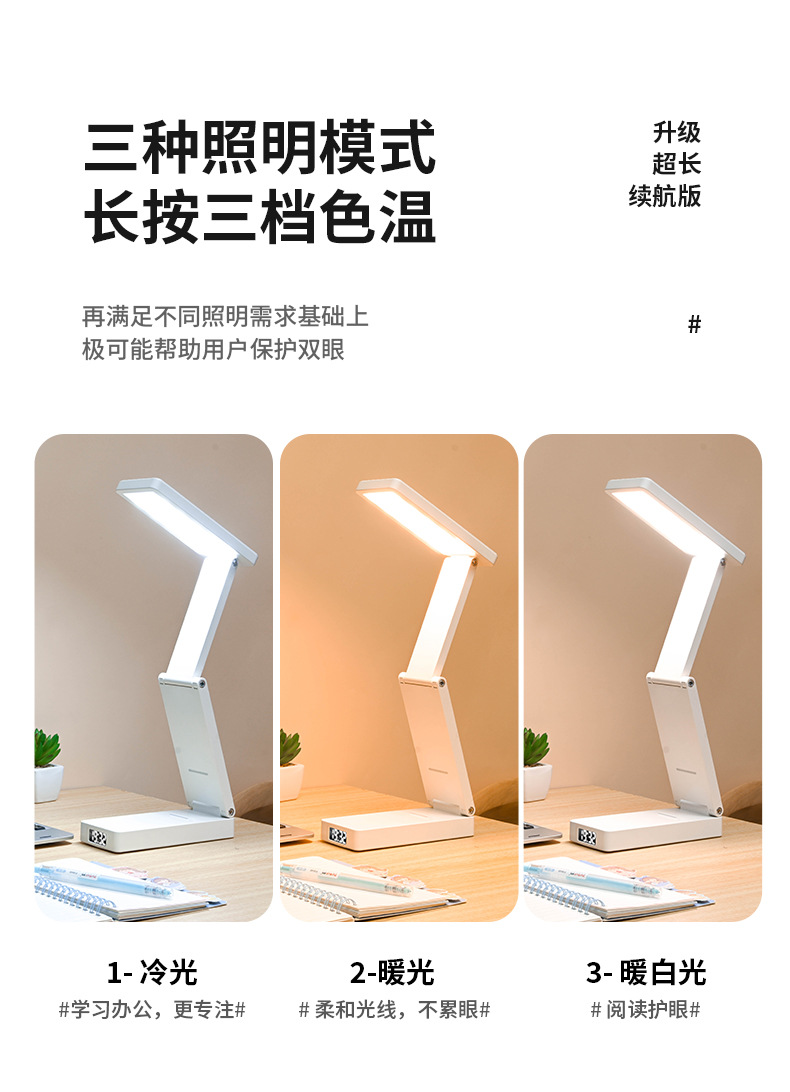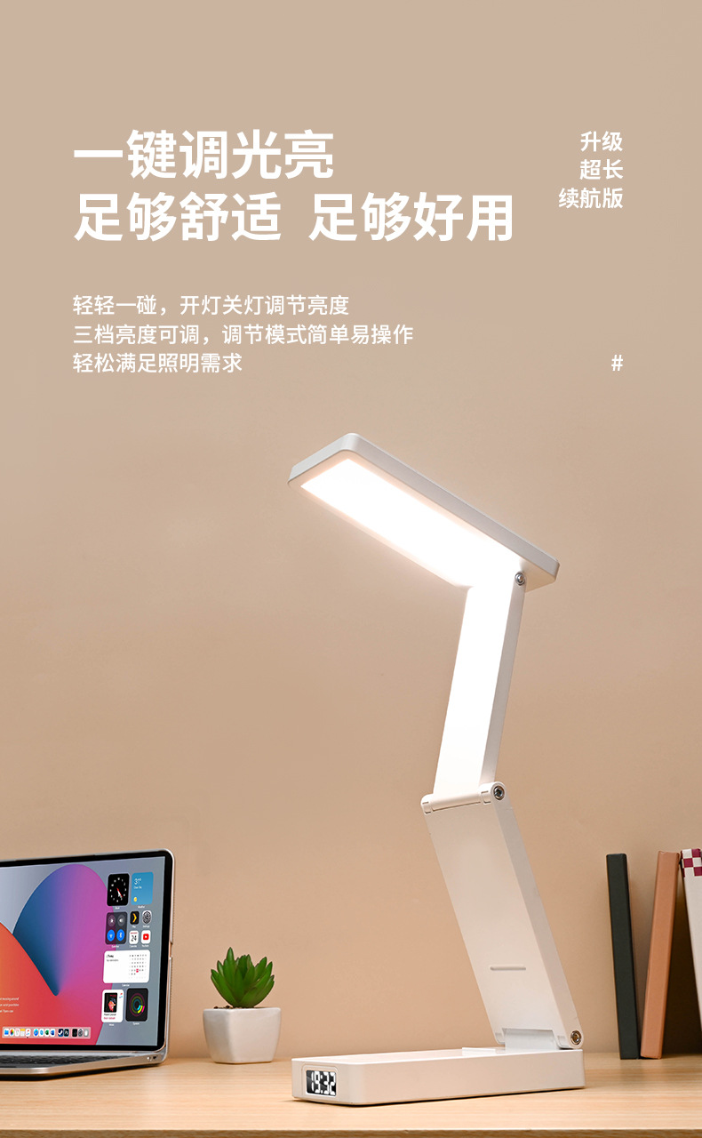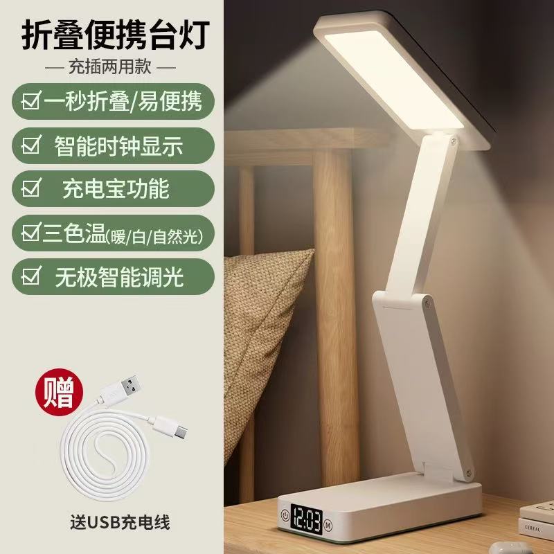 새로운 접이식 시계 충전 보물 기능 눈 보호 램프 학생 기숙사 테이블 램프 침대 옆 램프 책상 독서 램프