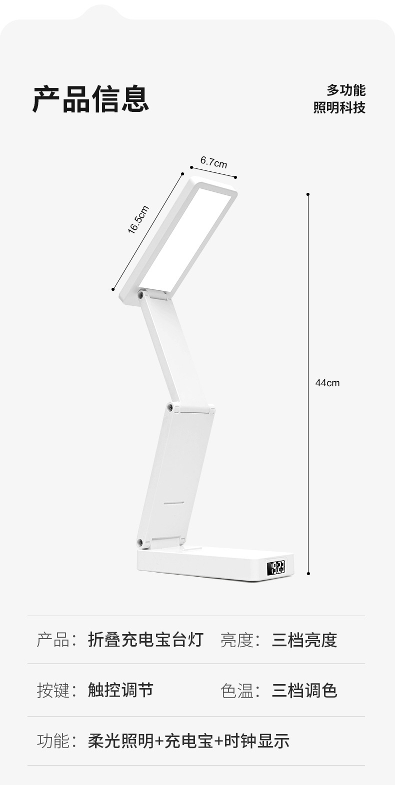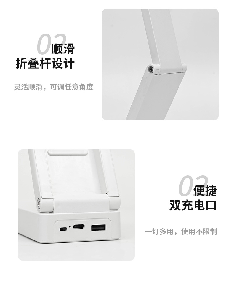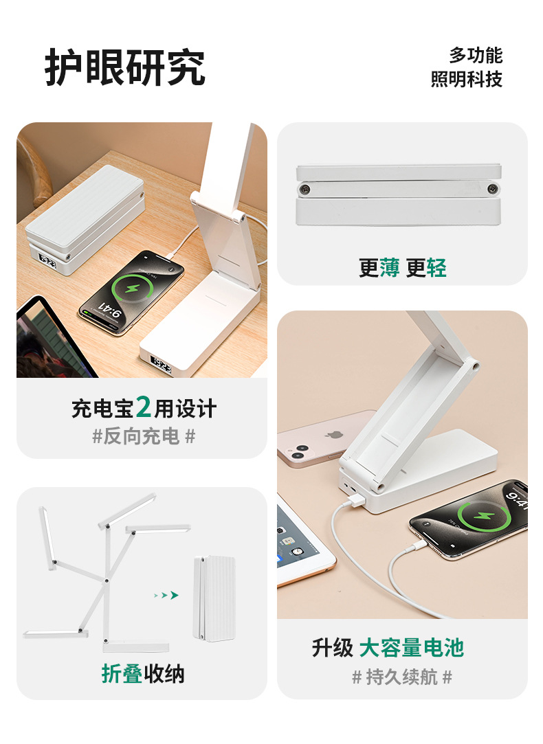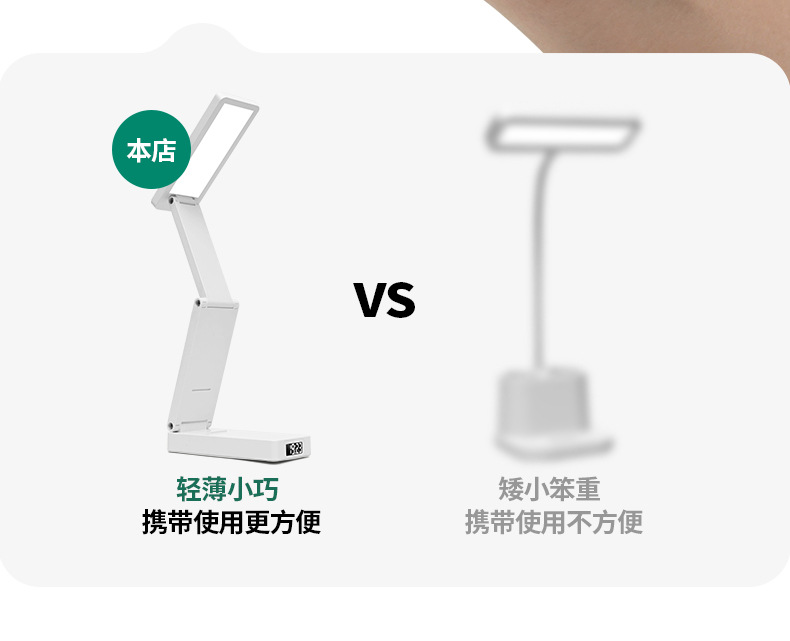 새로운 접이식 시계 충전 보물 기능 눈 보호 램프 학생 기숙사 테이블 램프 침대 옆 램프 책상 독서 램프