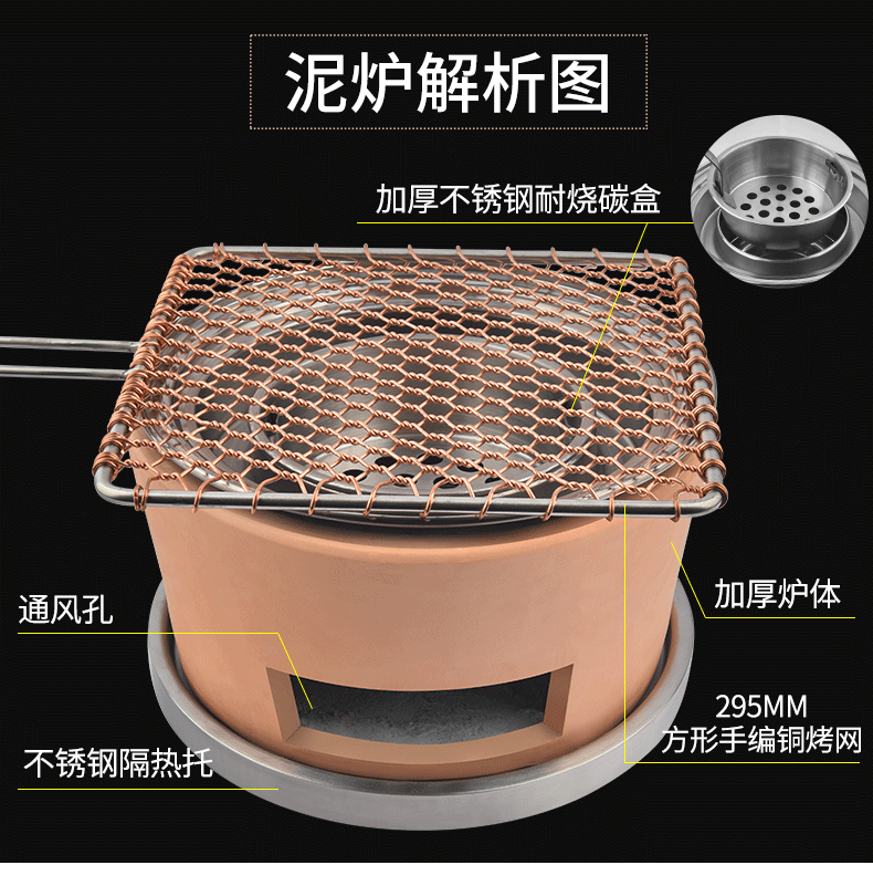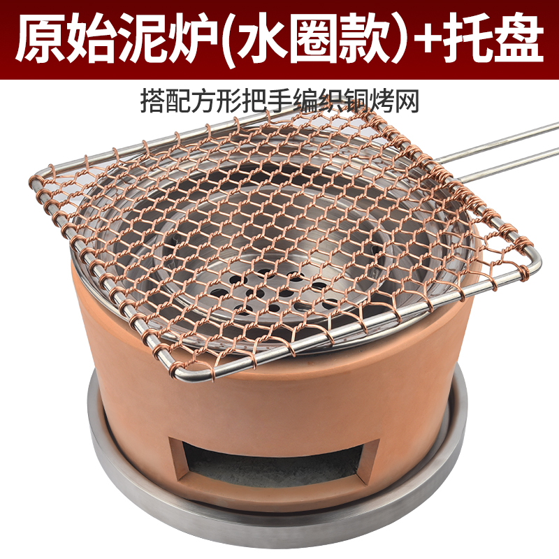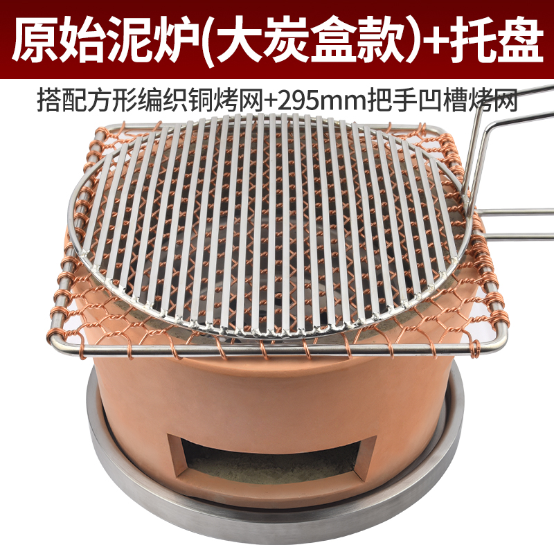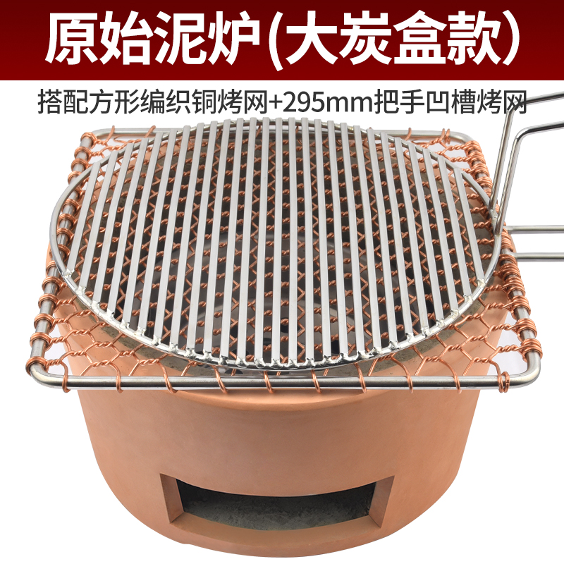 • εαβγδζ 대형 숯 상자 스타일 진흙 난로 + 손잡이 사각 구리 메쉬 + 홈 메쉬 + 스테인레스 스틸 트레이 εαβγδζ