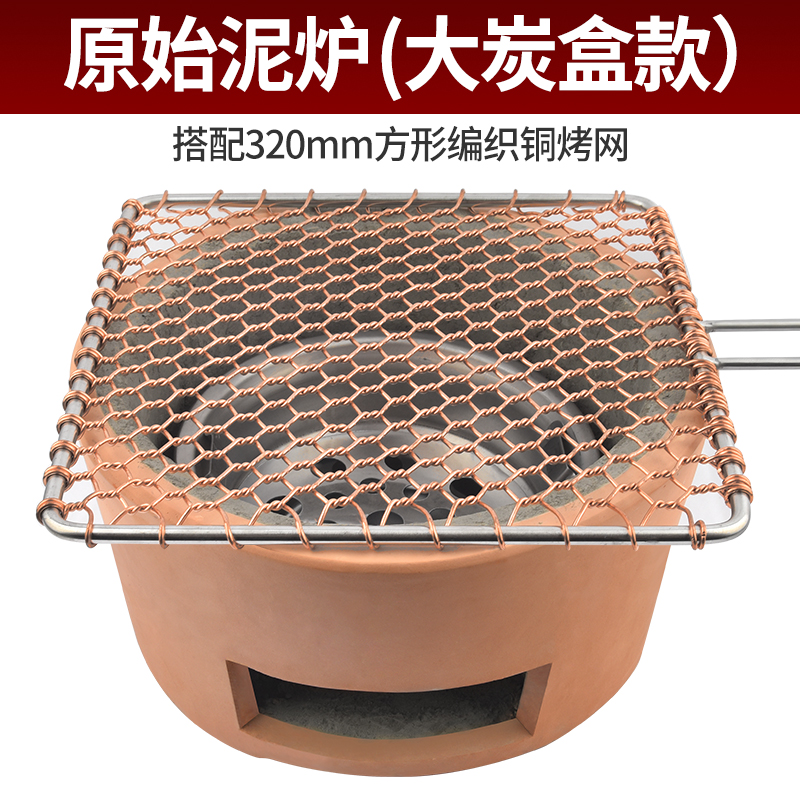 • εαβγδζ 대형 숯 상자 스타일 진흙 난로 + 사각 구리 메쉬 εαβγδζ