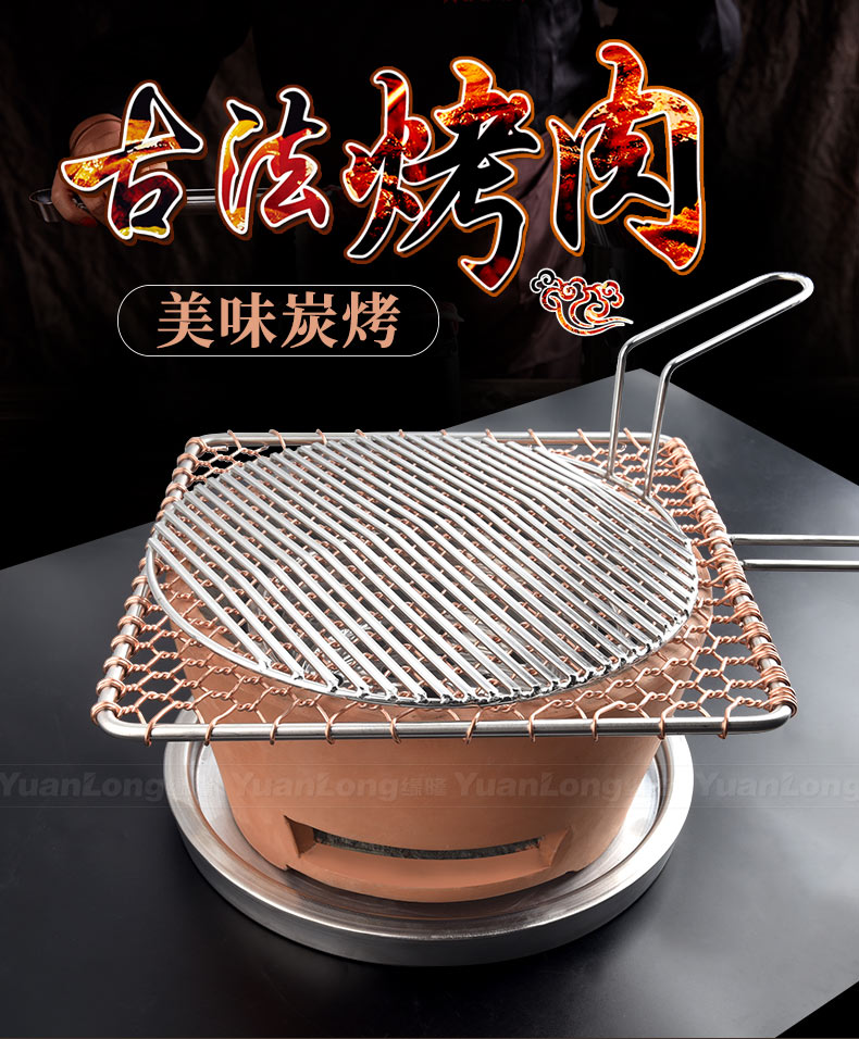 • εαβγδζ 대형 숯 상자 스타일 진흙 난로 + 스테인레스 스틸 사각 메쉬 εαβγδζ