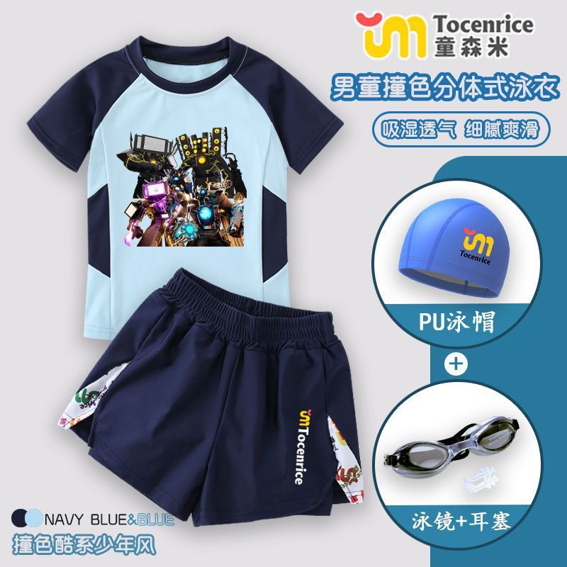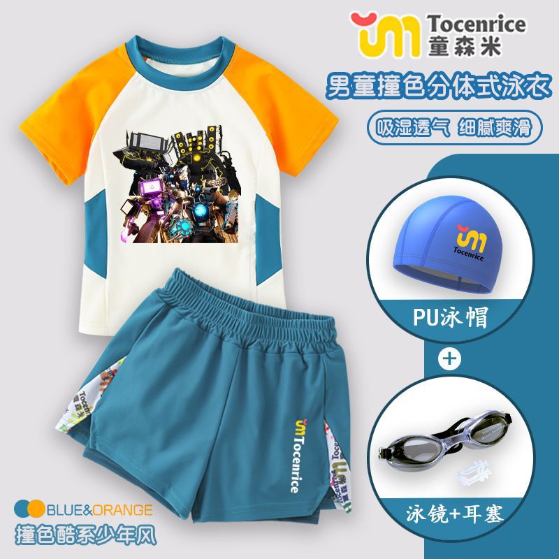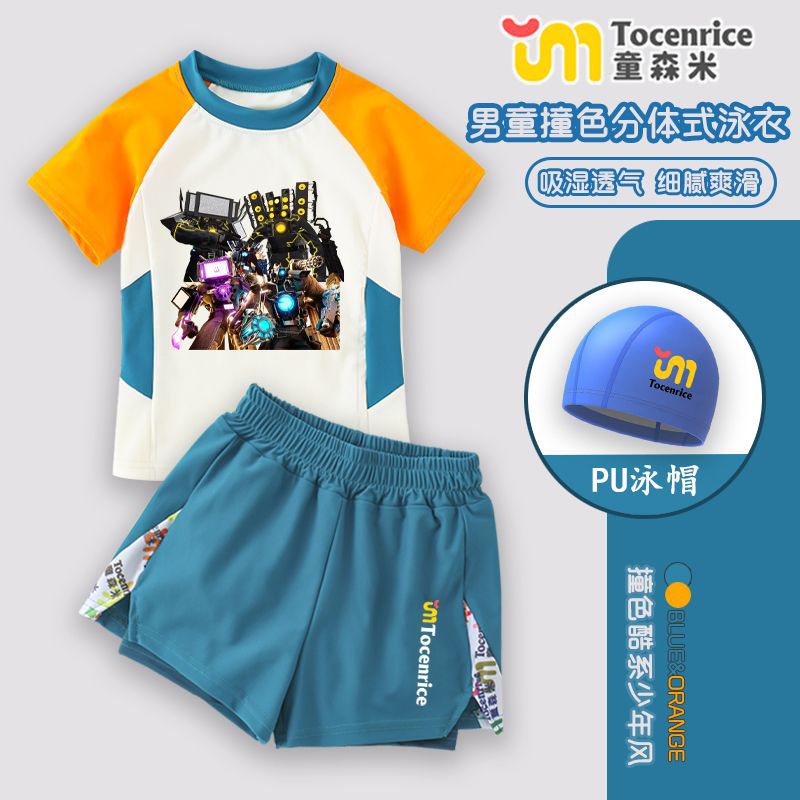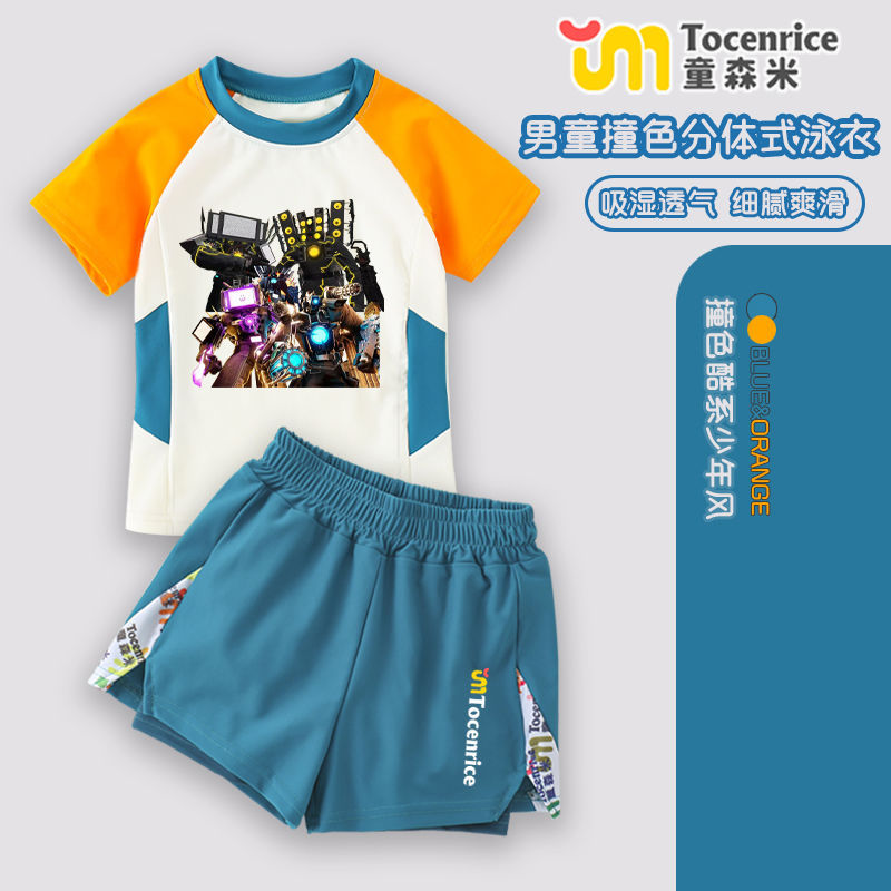 새로운 타이탄 모니터 오디오 TV 남성용 아동복 수영복 분할 반팔 수영복 태양 방지 빠른 건조 수영 트렁크스토어 가기