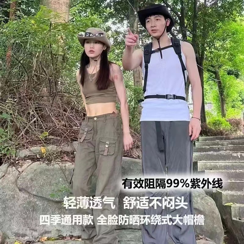 여름 남성과 여성의 야외 하이킹 등산 낚시 모자 서양 카우보이 모자 다목적 졸라 매는 끈 태양 보호 모자 큰 챙 어부 모자스토어 가기