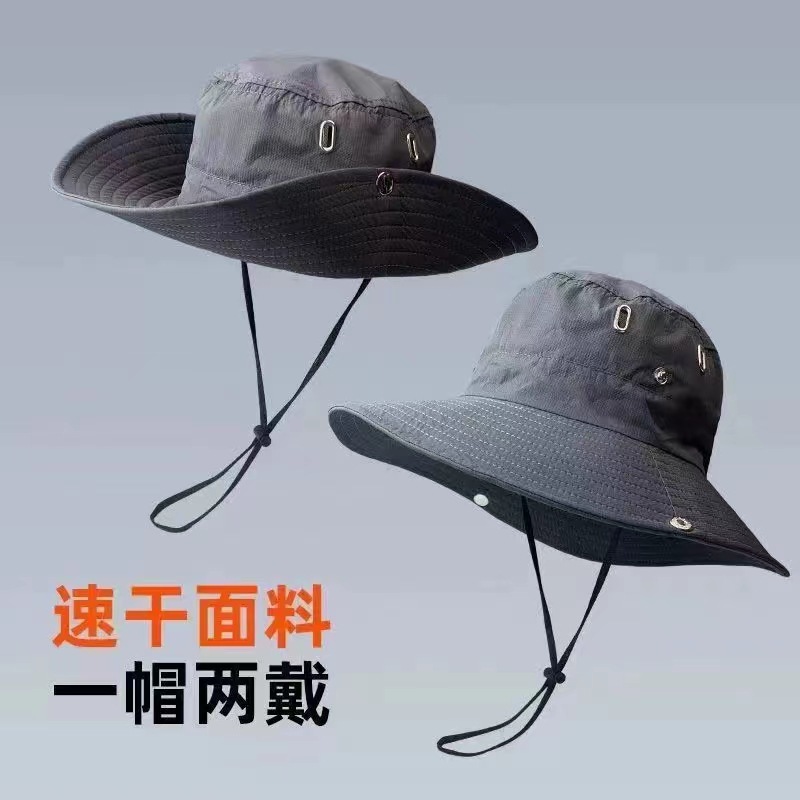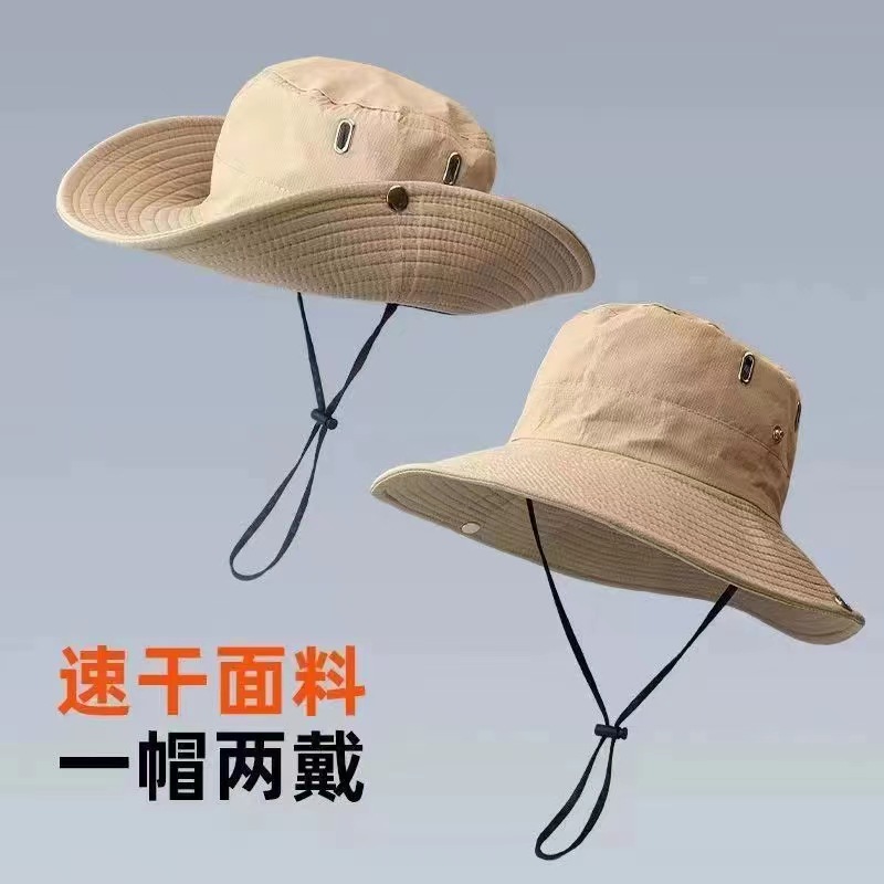여름 남성과 여성의 야외 하이킹 등산 낚시 모자 서양 카우보이 모자 다목적 졸라 매는 끈 태양 보호 모자 큰 챙 어부 모자