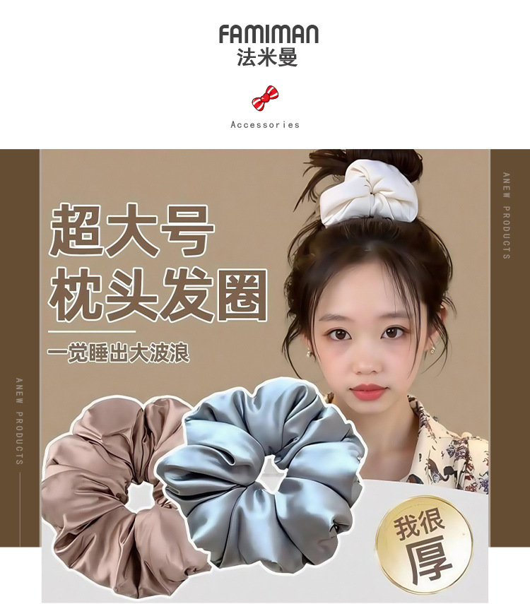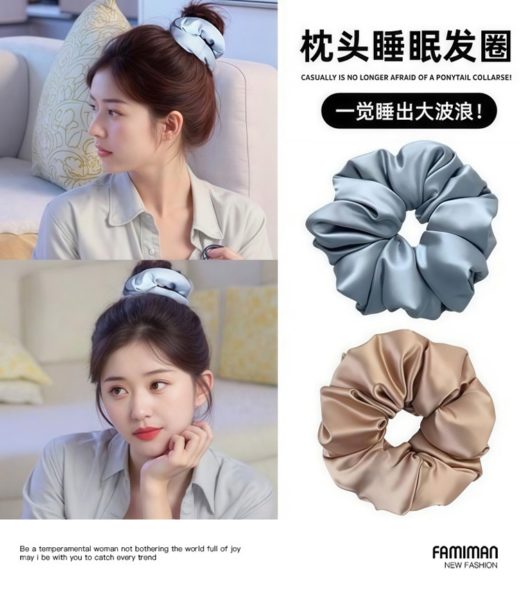 인터넷 연예인 베개 헤어 링 2024 새로운 스타일 헤어 로프 오버 사이즈 실크 충전 수면 헤어 링 키치 대형 내장 헤어 액세서리