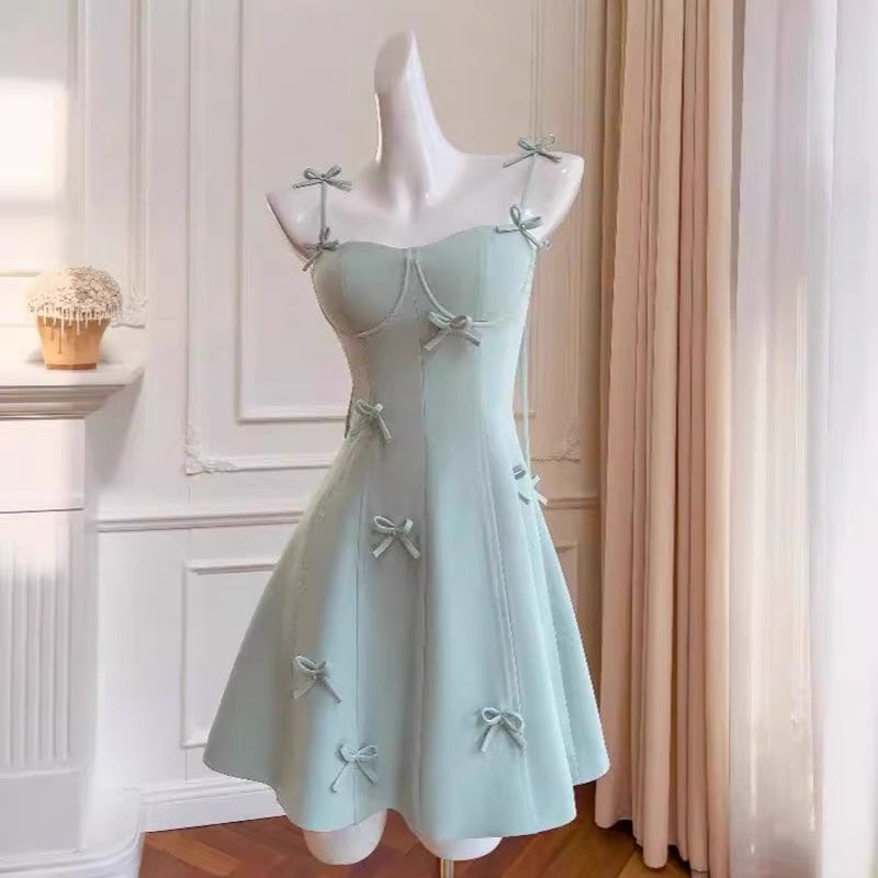 2025 새로운 여름 프랑스 틈새 디자인 활 스트랩 밝은 색 작은 사교계 휴일 원피스