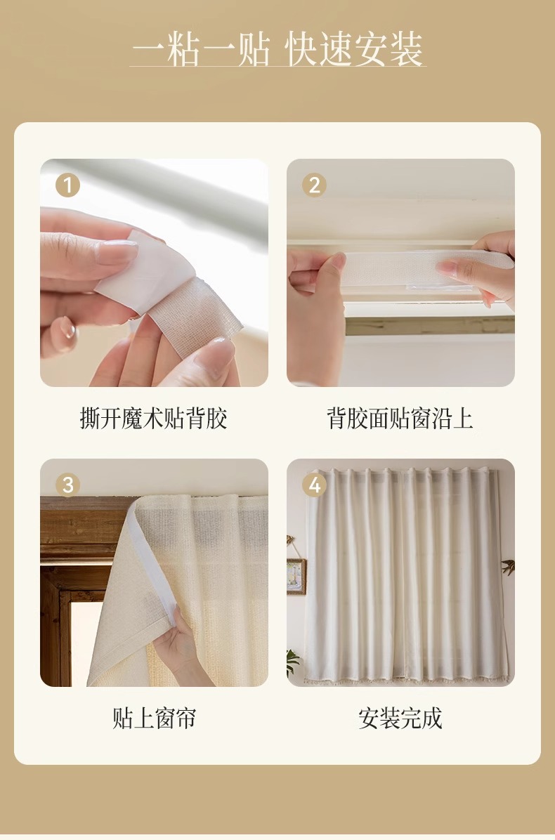 간단한 벨크로 펀치가없는 거즈 커튼 베이 창 커튼 설치 투명한 관상용 침실 임대 방 작은 창 대피소스토어 가기