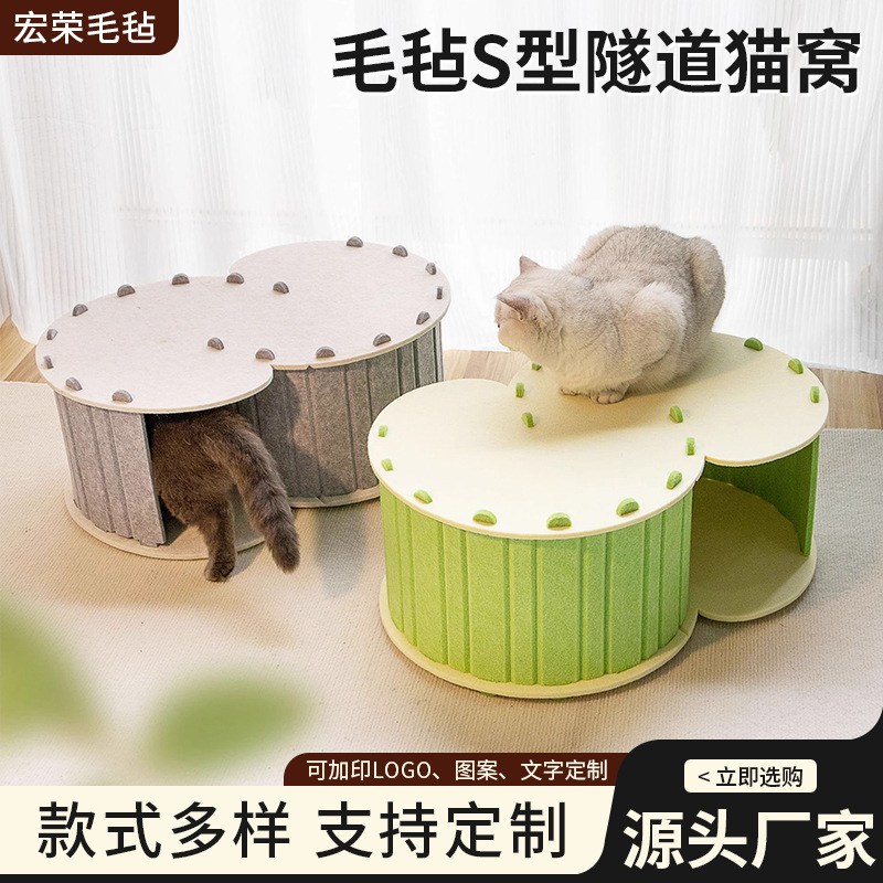 사계절 유니버설 고양이 둥지 휴대용 고양이 둥지 통기성 고양이 터널 스트라이프 더블 레이어 펠트 애완 동물 둥지 이동식 보관스토어 가기