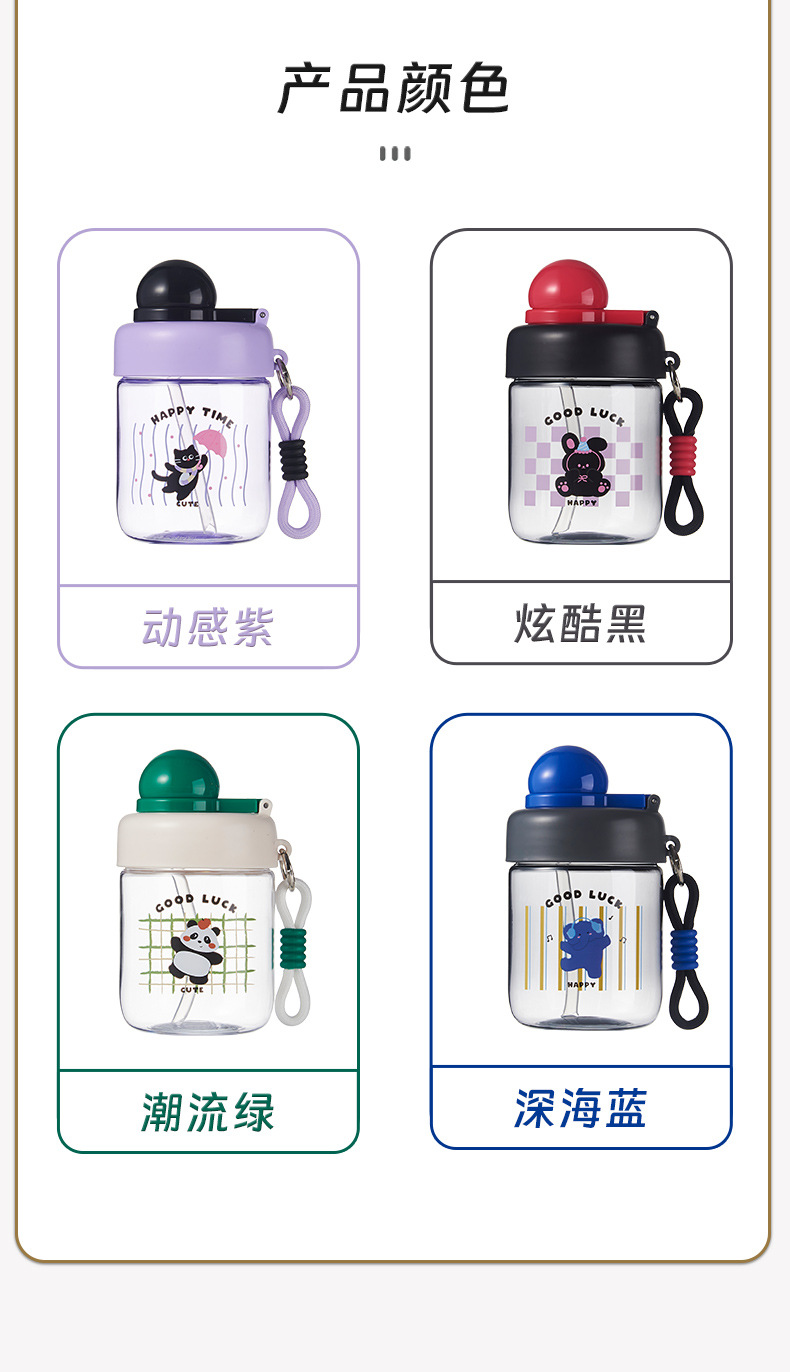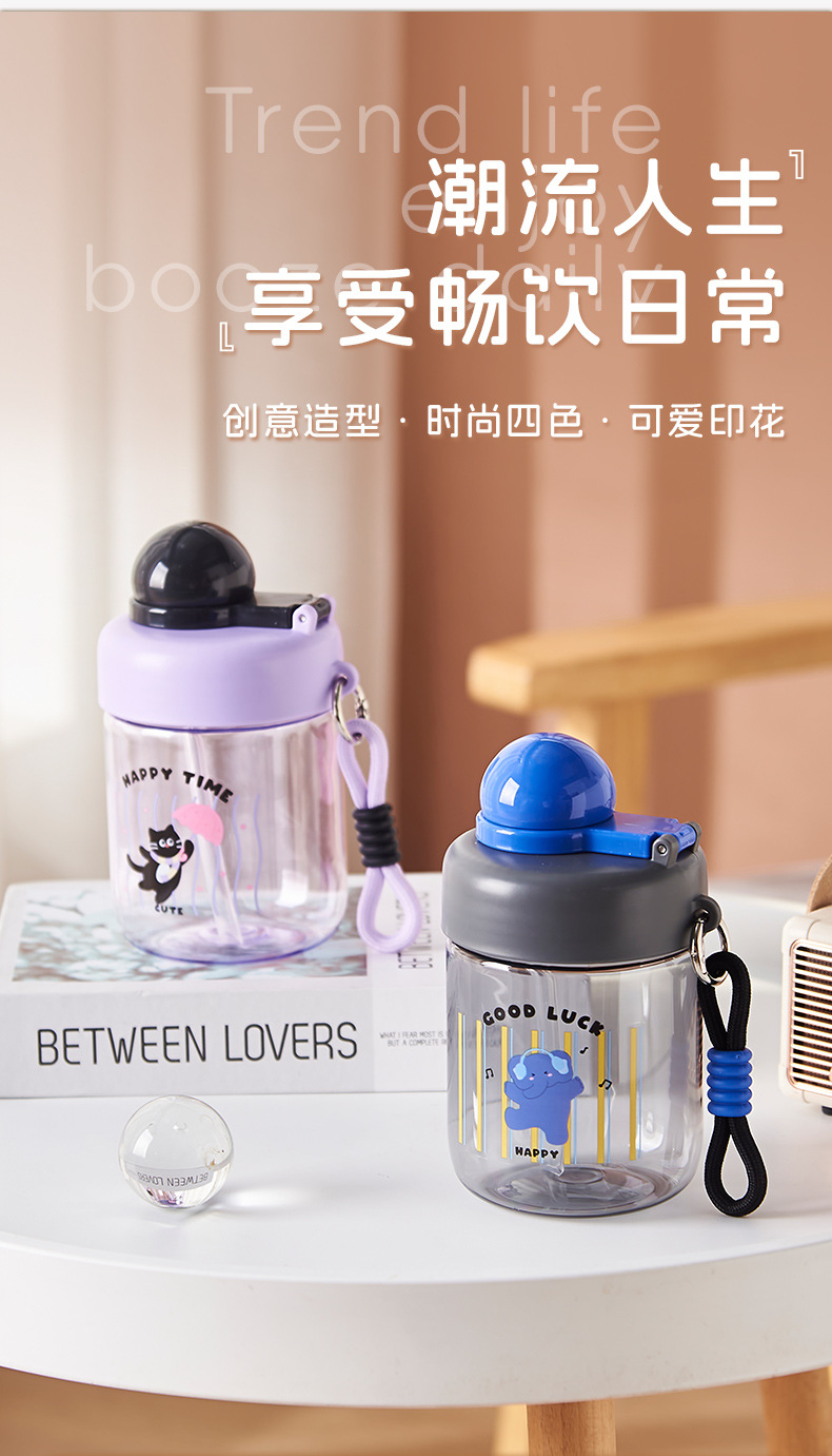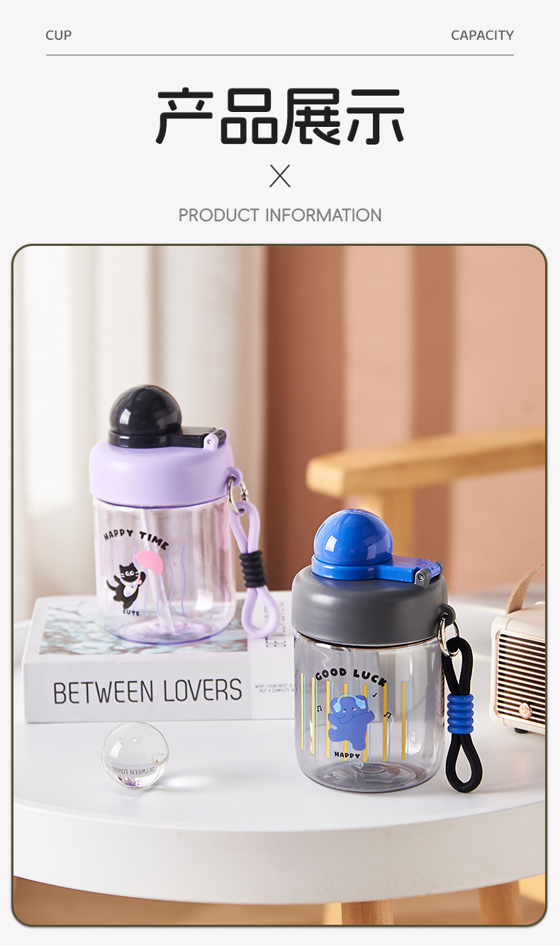 퍼싱 만화 워터 컵 어린이 드롭 방지 휴대용 컵 남자와 여자 핸디 컵 손잡이 컵과 함께 귀여운 플라스틱 컵
