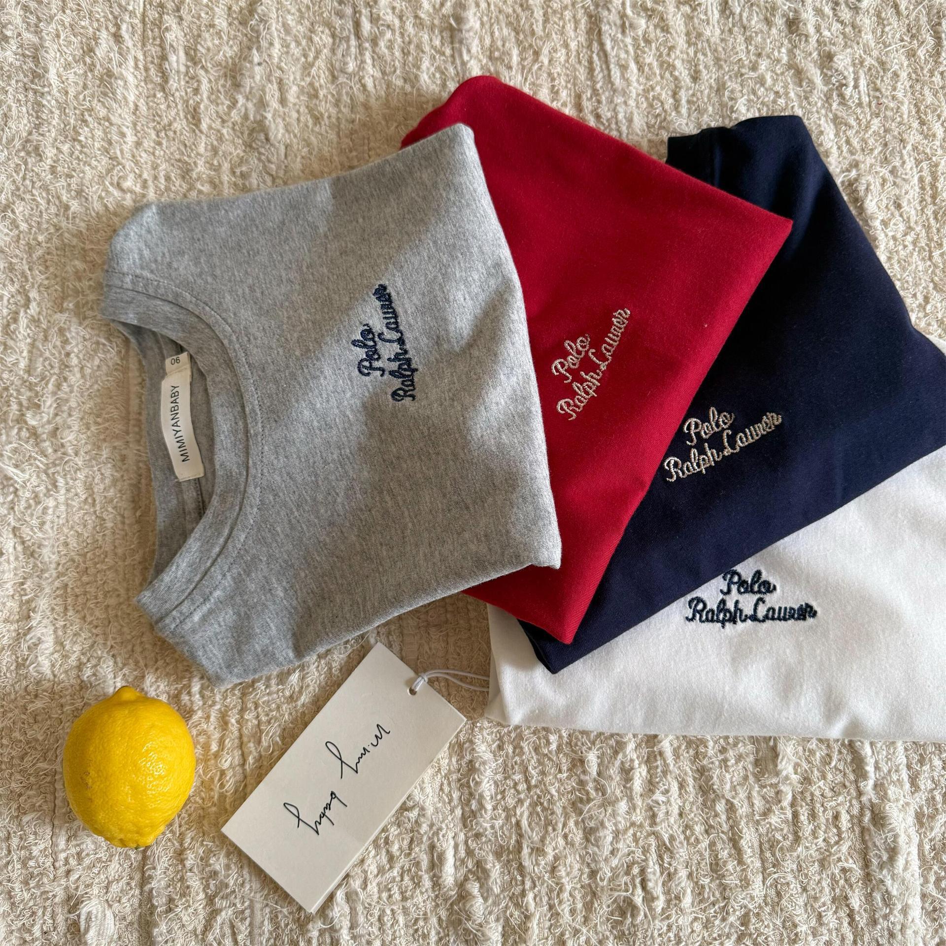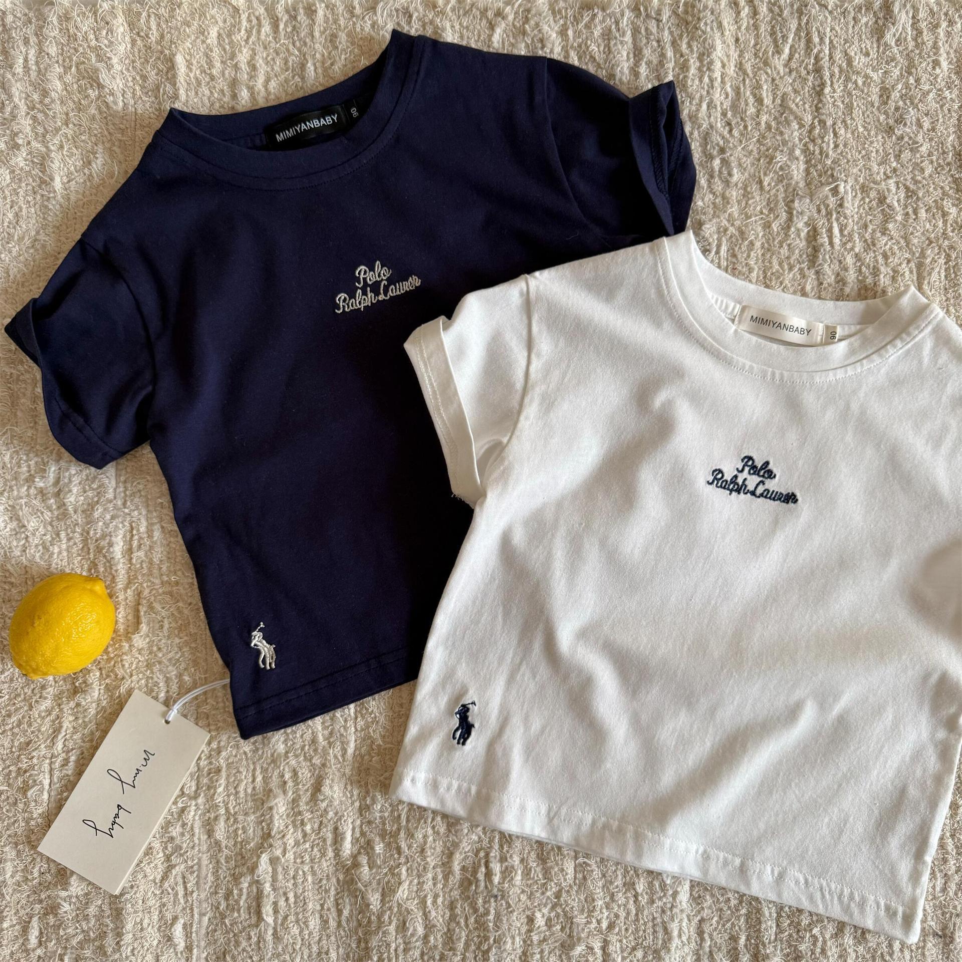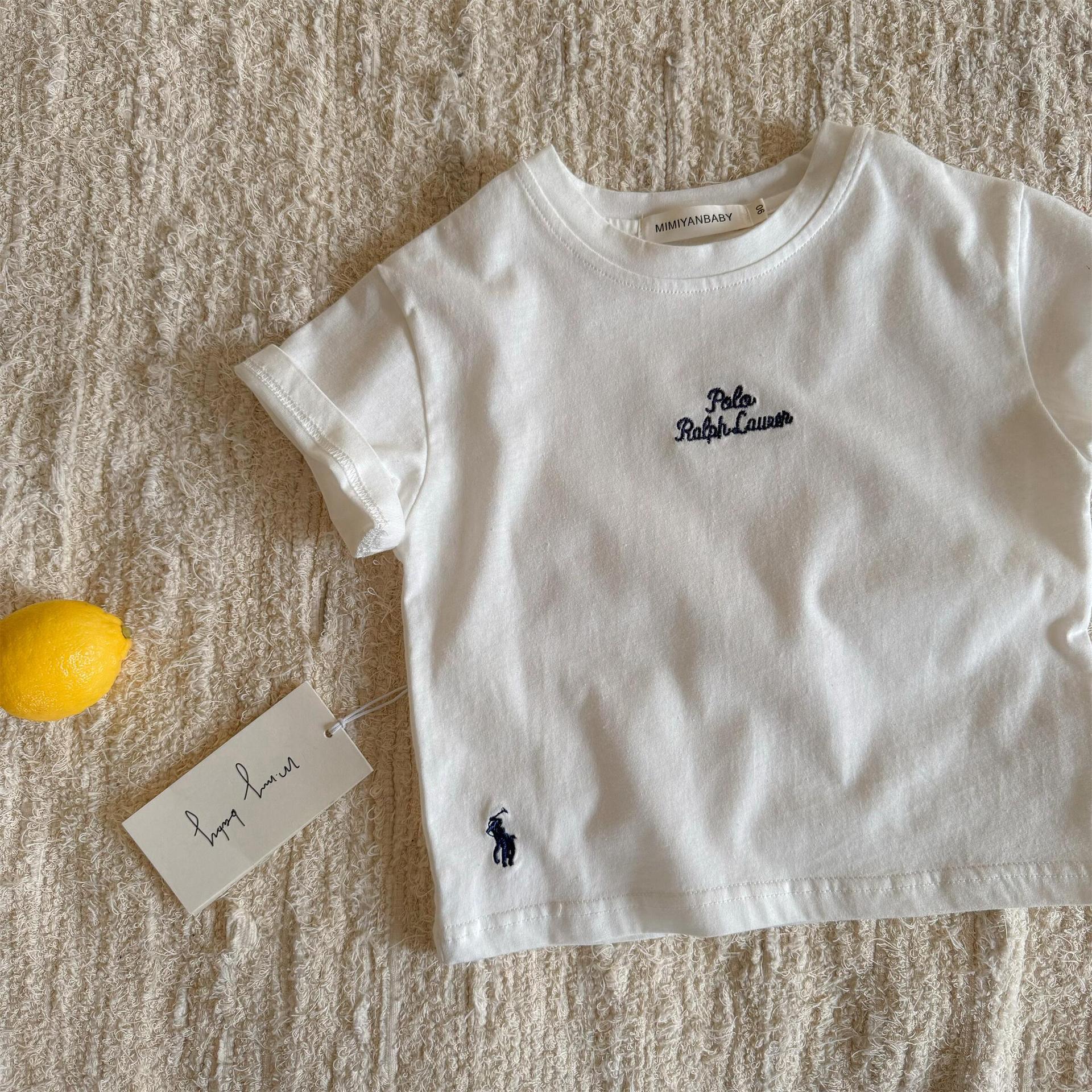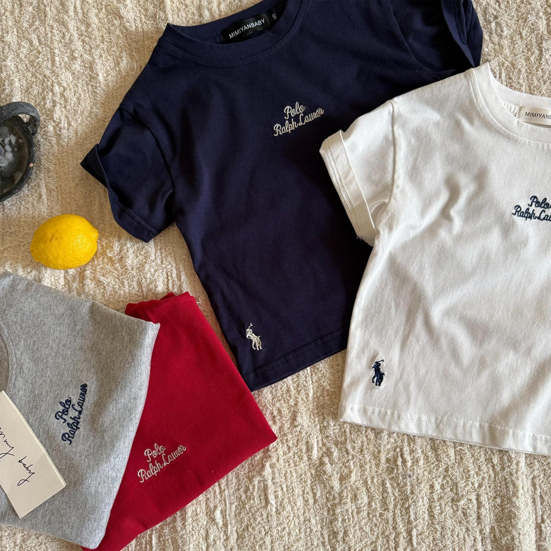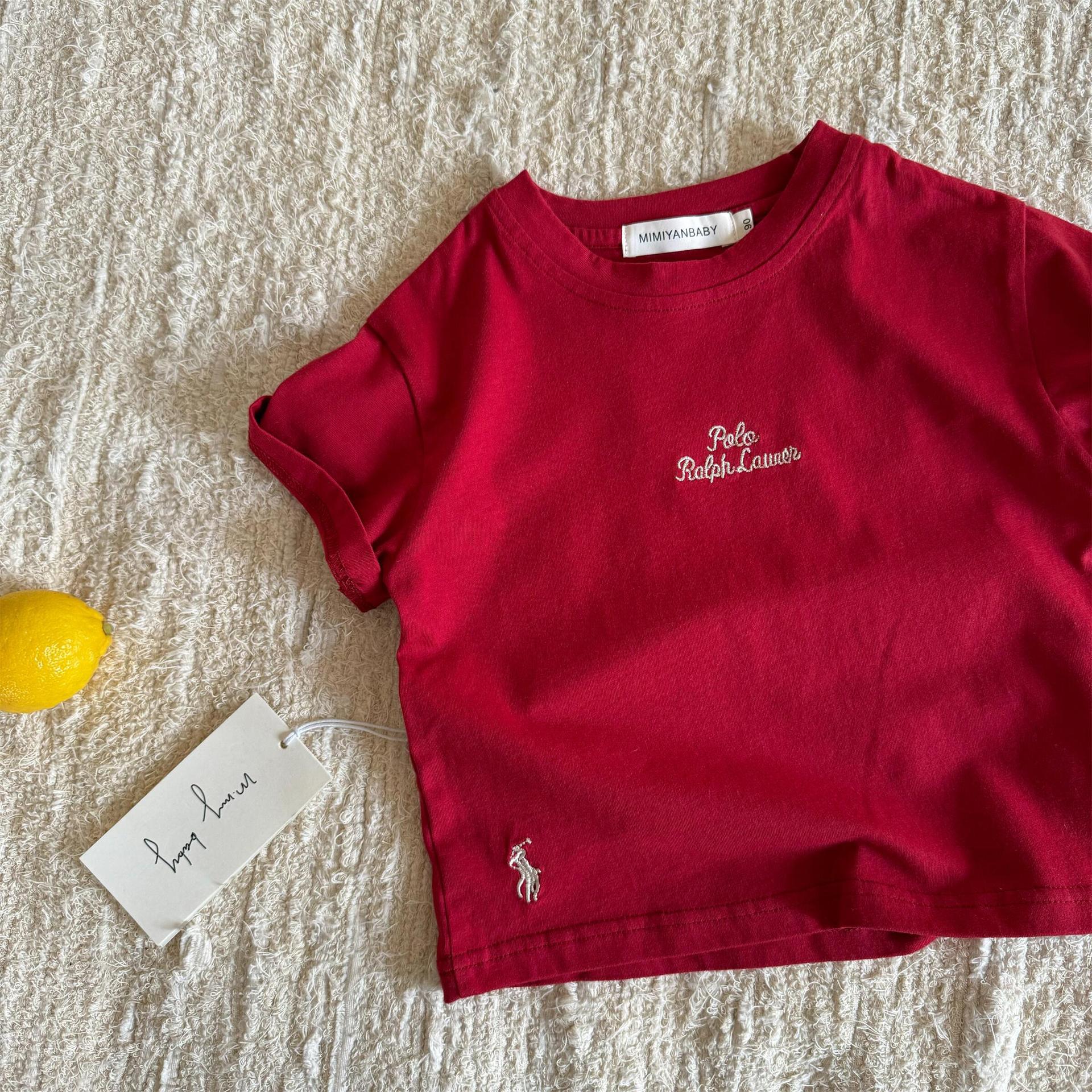 남아 및 여아용 아동용 반팔 여름 스타일 일본 트렌디 브랜드 빨간색 자수 문자 베이비 보텀 셔츠 아동용 패션 티셔츠 t