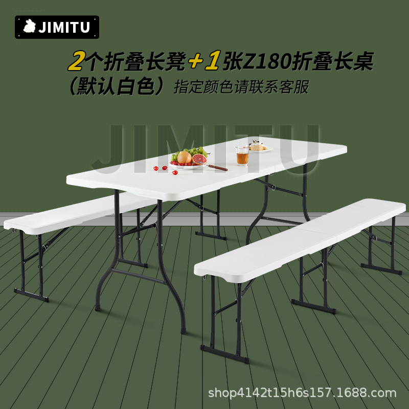 • 접이식 1.8m 테이블 + 스툴 1개 [강화 버전] 기본 흰색