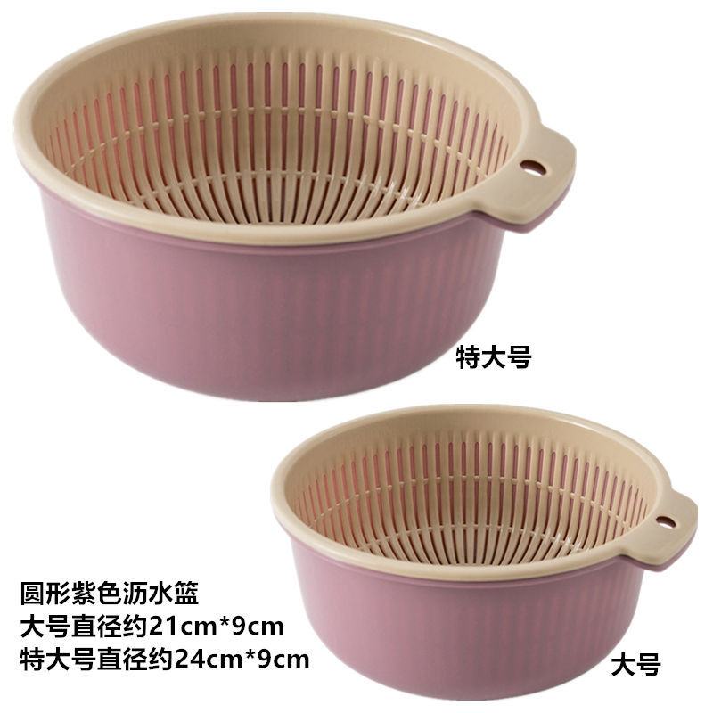 • 퍼플 6종세트 [특대+대+중] - 원형 2단 배수바구니 [외부대야+급속배수]