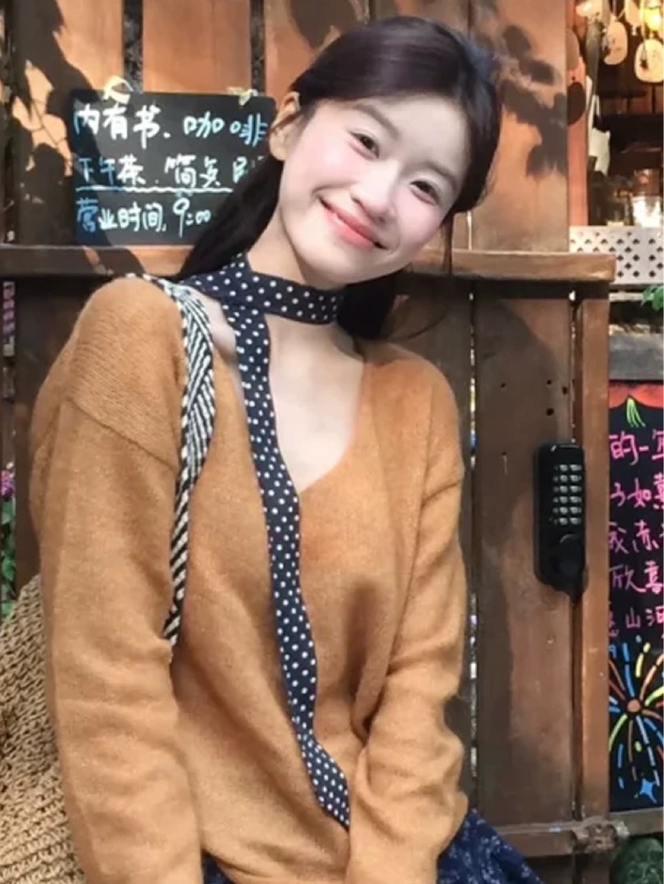 한국의 분위기 감각 ~ 블랙 웨이브 도트 긴 실크 스카프 이른 봄 고급 감각 조커 목 헤어 밴드 얇은 스카프 여성스토어 가기