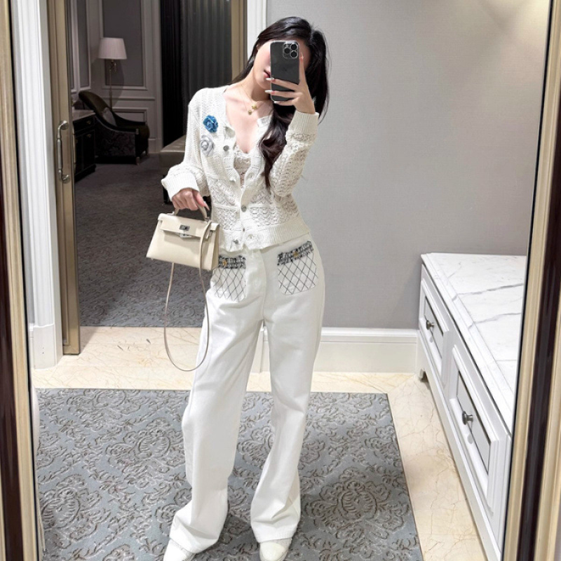 2025 봄 새로운 청바지 여성 디자인 감각 넓은 다리 슬림 올해 인기 캐주얼 스트레이트 바지스토어 가기