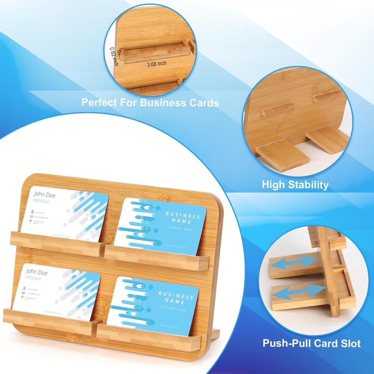 대나무 카드 홀더 호텔 프론트 데스크 명함 디스플레이 브래킷 오피스 데스크탑 수직 엽서 보관 랙스토어 가기