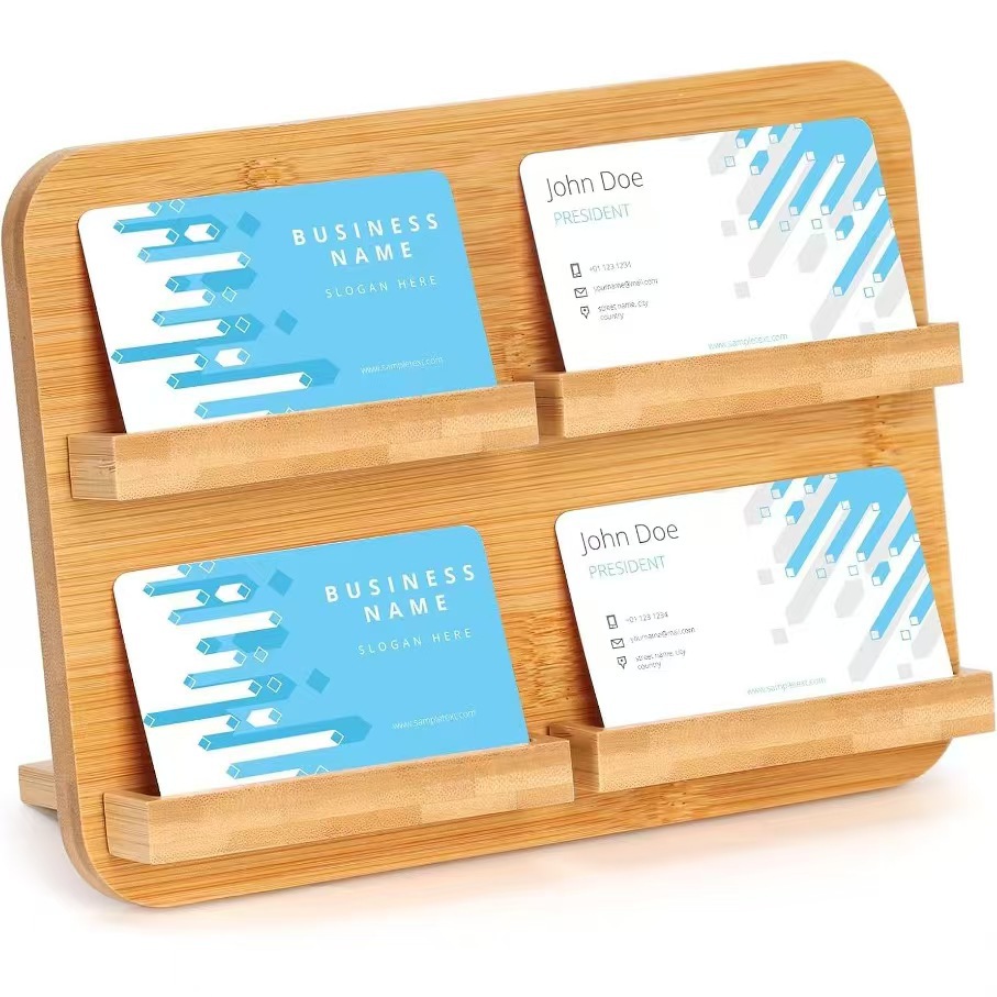 대나무 카드 홀더 호텔 프론트 데스크 명함 디스플레이 브래킷 오피스 데스크탑 수직 엽서 보관 랙