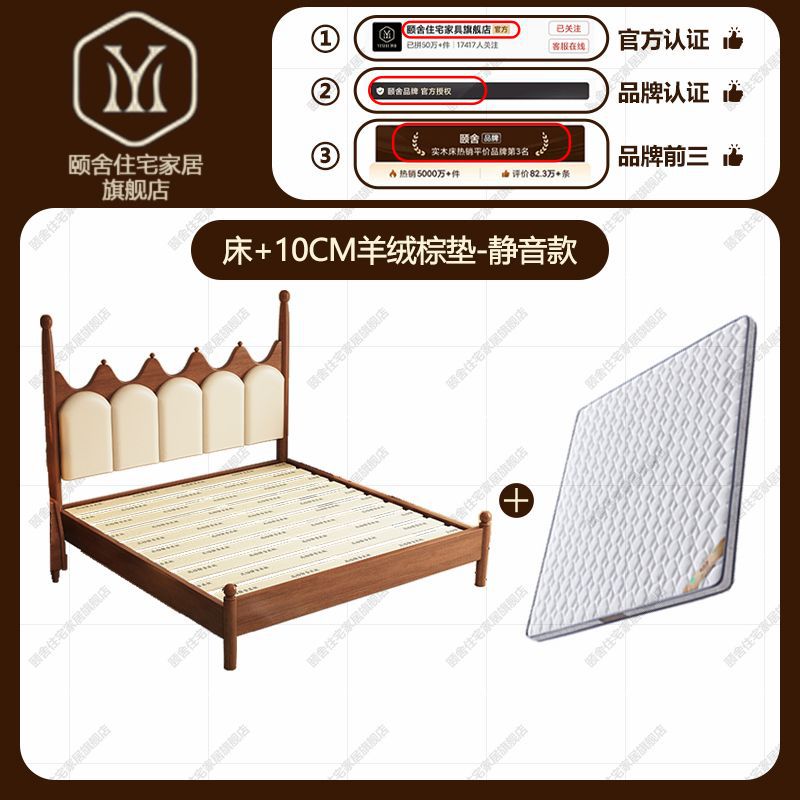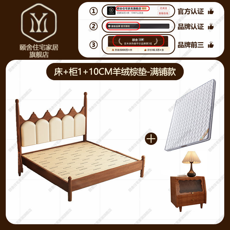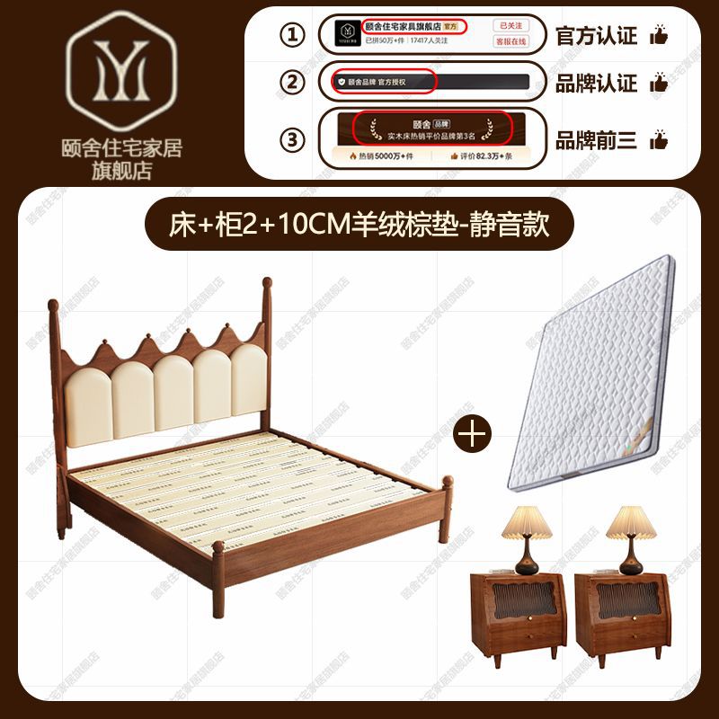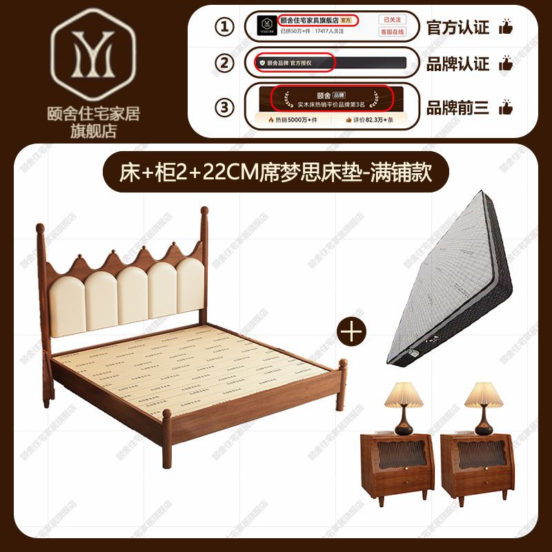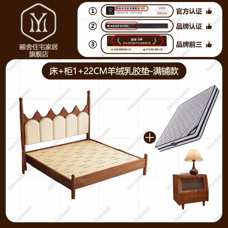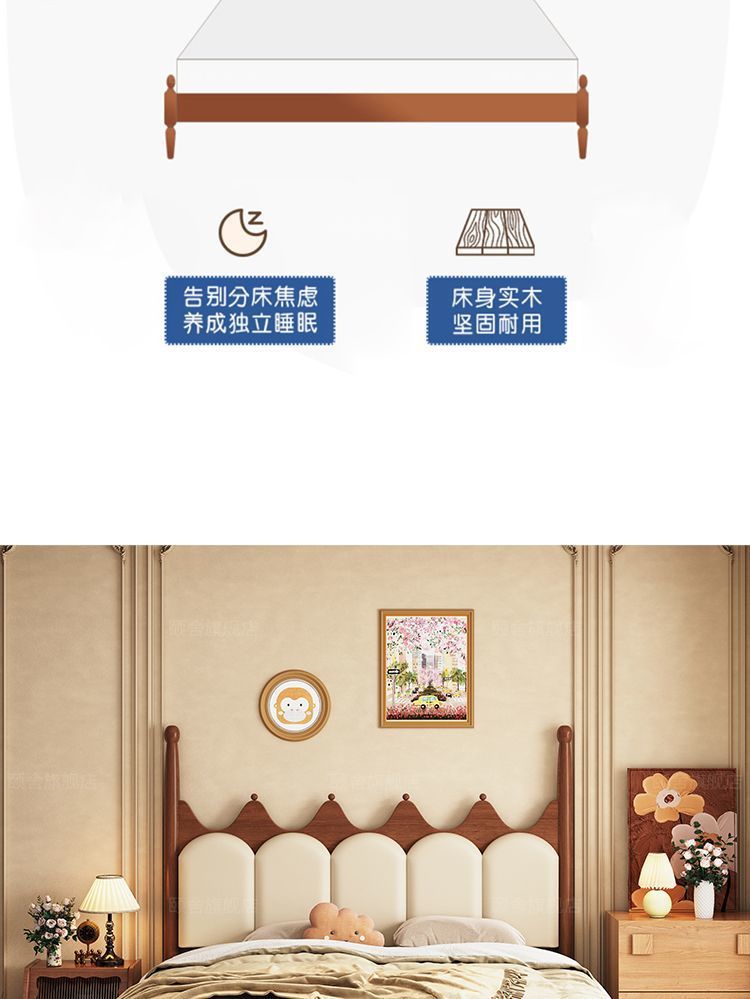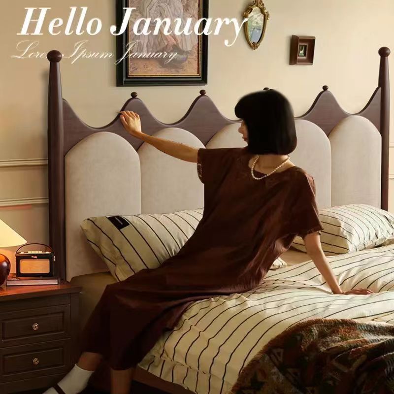 프랑스 빈티지 솔리드 우드 베드 크라운 마스터 침실 작은 아파트 부드러운 가방 미국 프랑스 웨딩 침대 중간 크림 스타일 더블 침대스토어 가기