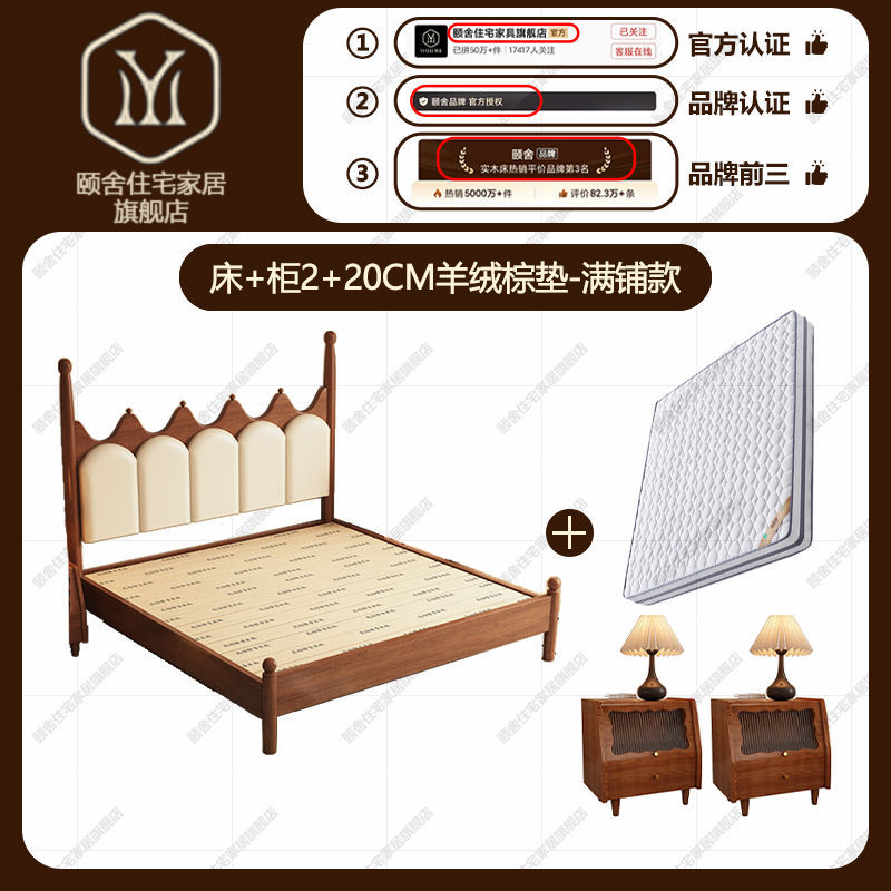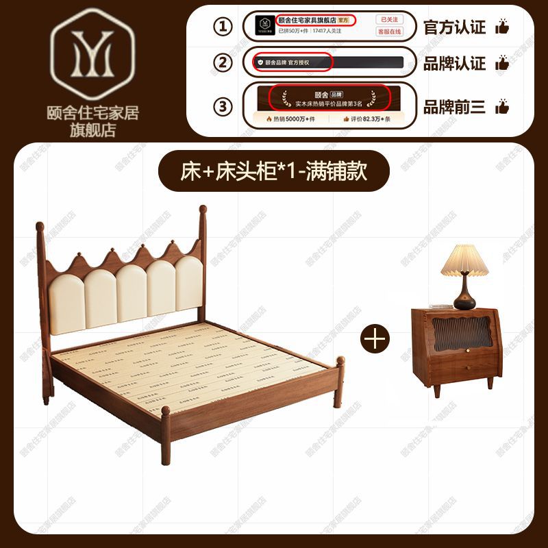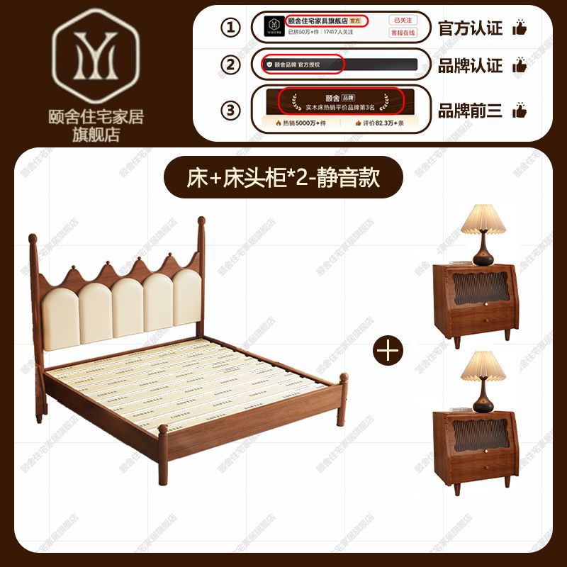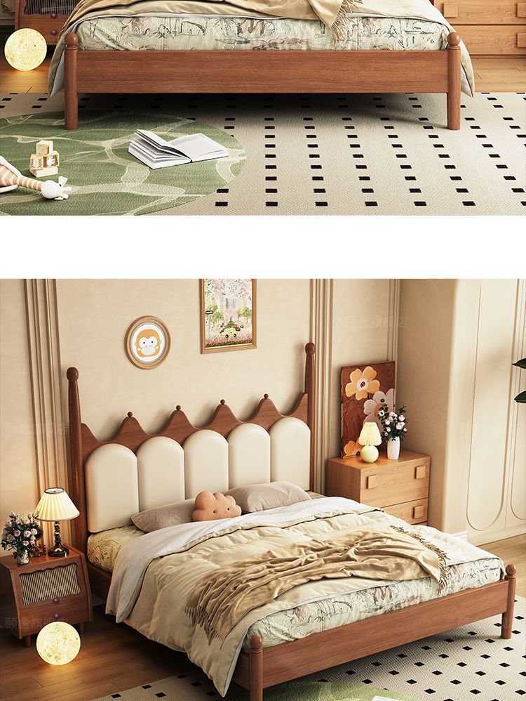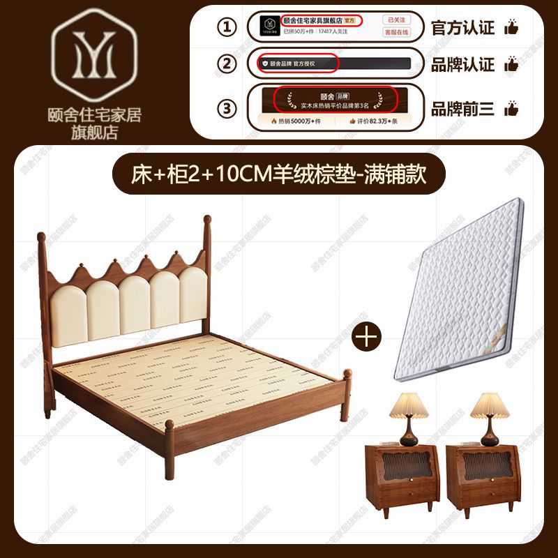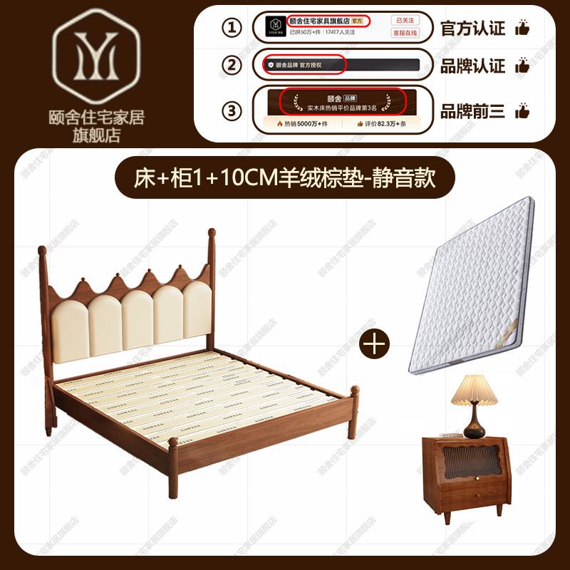 프랑스 빈티지 솔리드 우드 베드 크라운 마스터 침실 작은 아파트 부드러운 가방 미국 프랑스 웨딩 침대 중간 크림 스타일 더블 침대스토어 가기