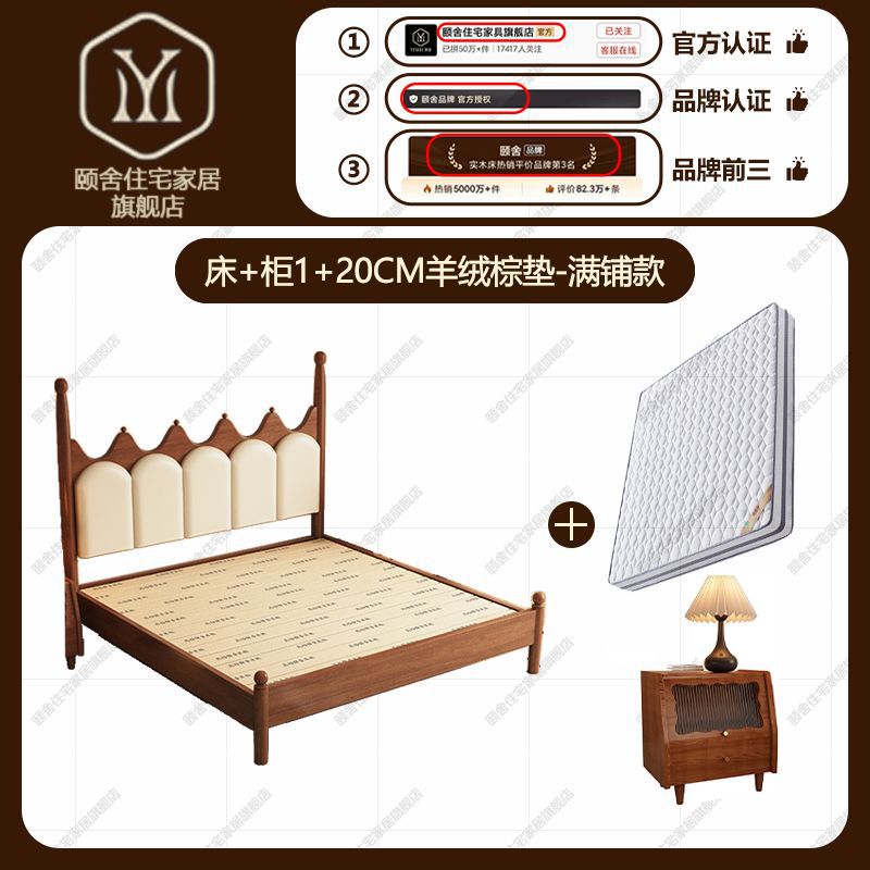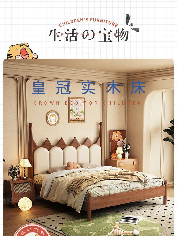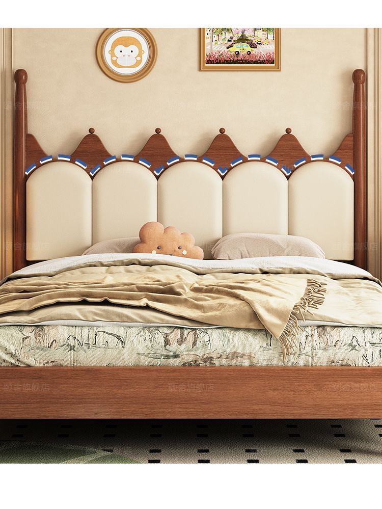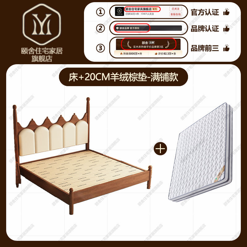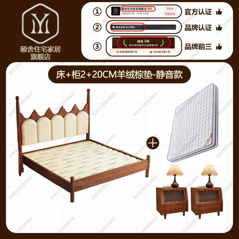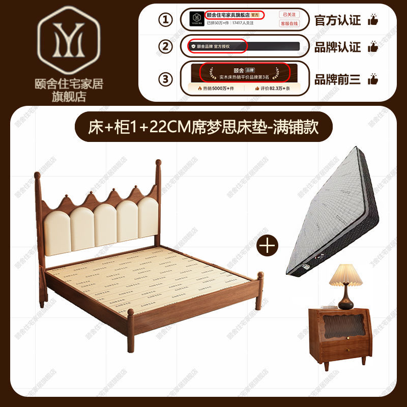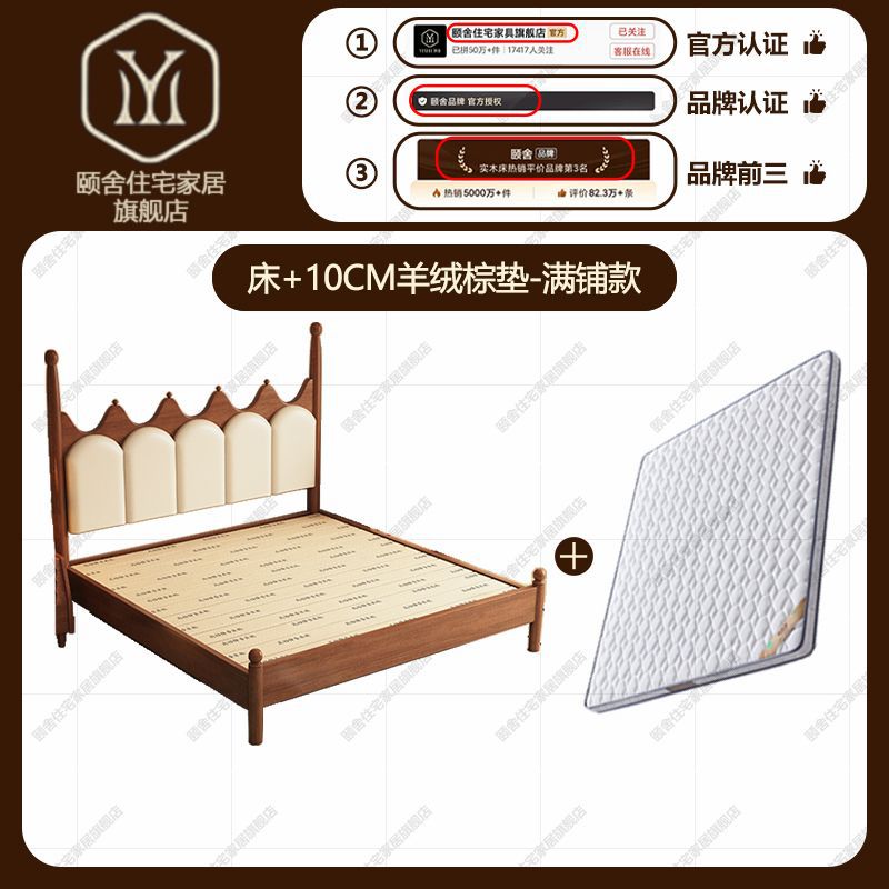 프랑스 빈티지 솔리드 우드 베드 크라운 마스터 침실 작은 아파트 부드러운 가방 미국 프랑스 웨딩 침대 중간 크림 스타일 더블 침대스토어 가기