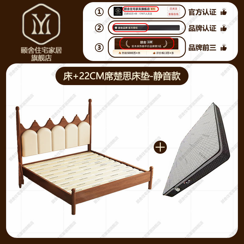 • 침대 + 22CM 캐시미어 라텍스 매트리스 - 무소음