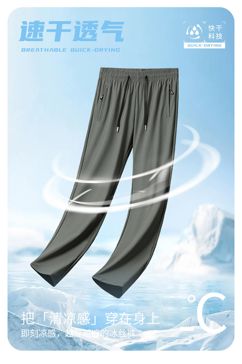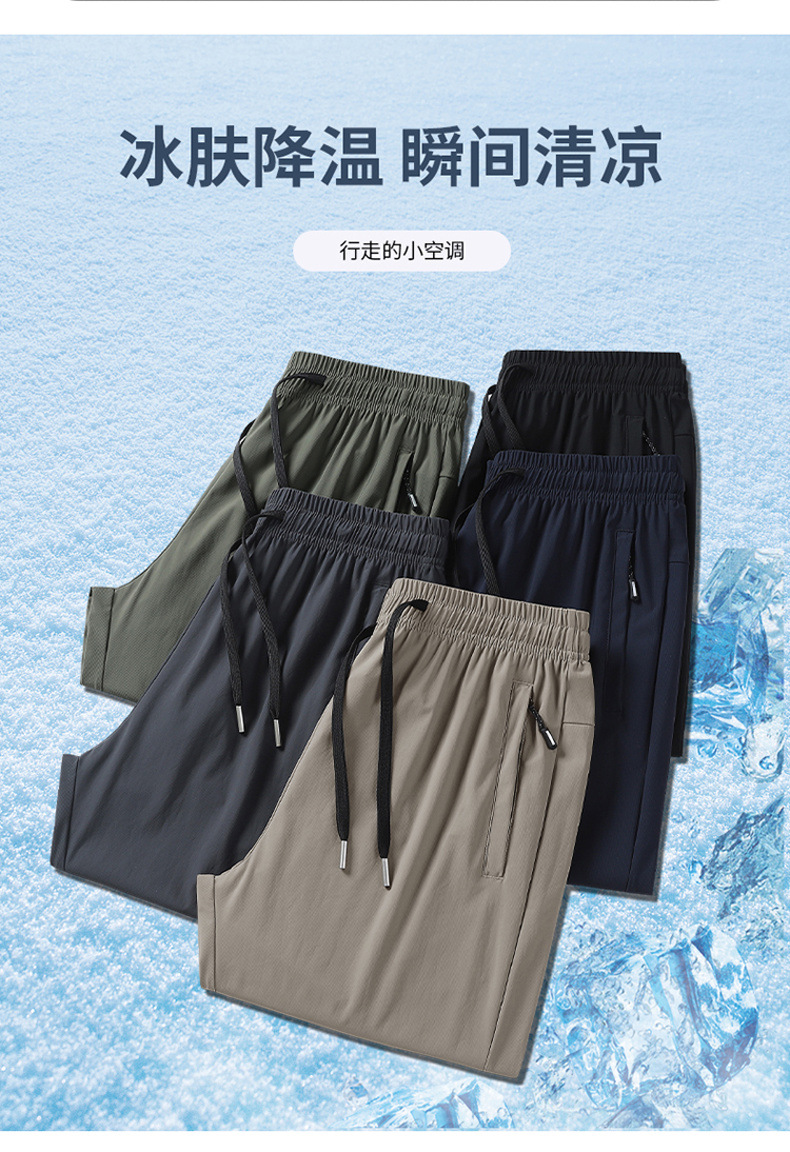 여름 얇은 캐주얼 바지 남자 2025 새로운 빠른 건조 아이스 실크 남자의 느슨한 바지 Drapy 스트레이트 바지 남자스토어 가기