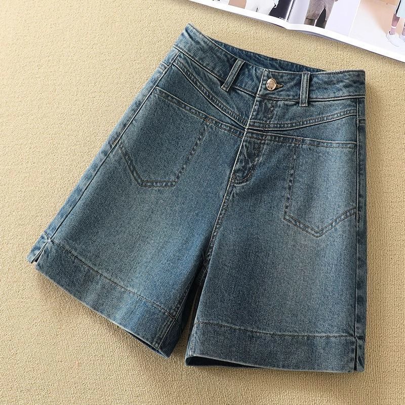 2024 새로운 여름 레트로 높은 허리 데님 반바지 여성 캐릭터 느슨한 직선 바지 작은 얇은 5 점 바지스토어 가기