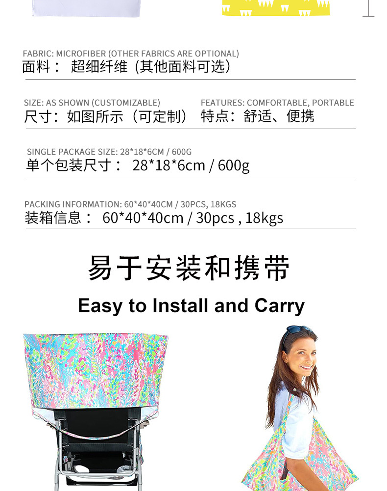 디지털 인쇄 흡수성 빠른 건조 타월 레코더 커버 휴대용 마이크로 파이버 야외 리코더 접이식 비치 의자 커버