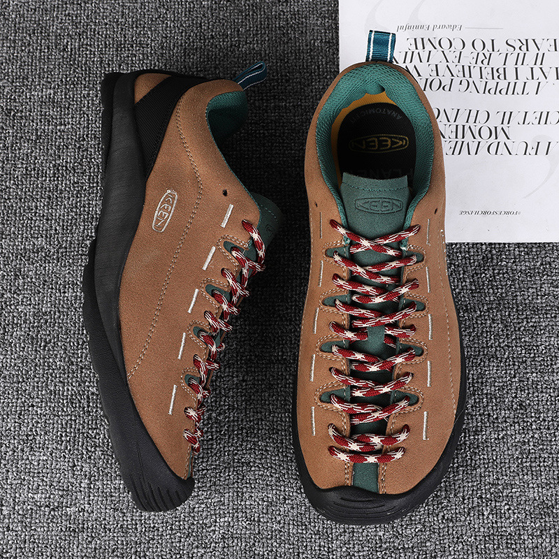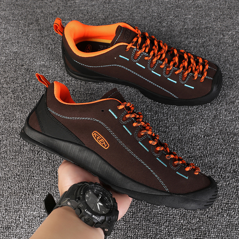 키엔 아웃도어 하이킹 두꺼운 밑창 캐주얼 다용도 운동화, 천연 가죽 배색 러닝화, 남녀 공용 통기성 패션 다용도
