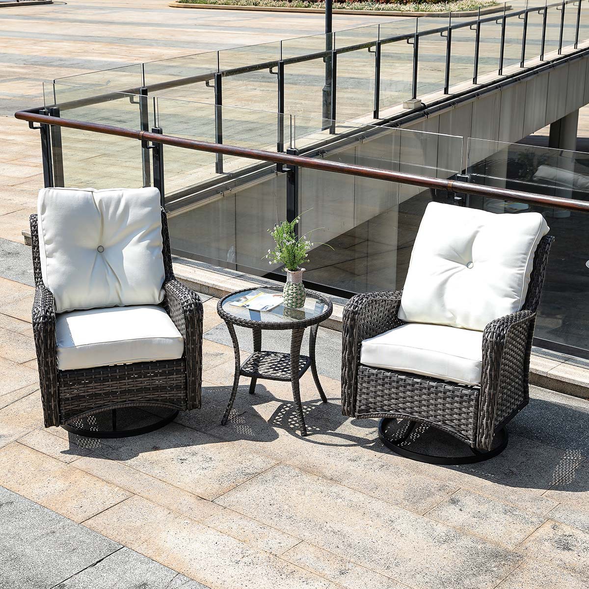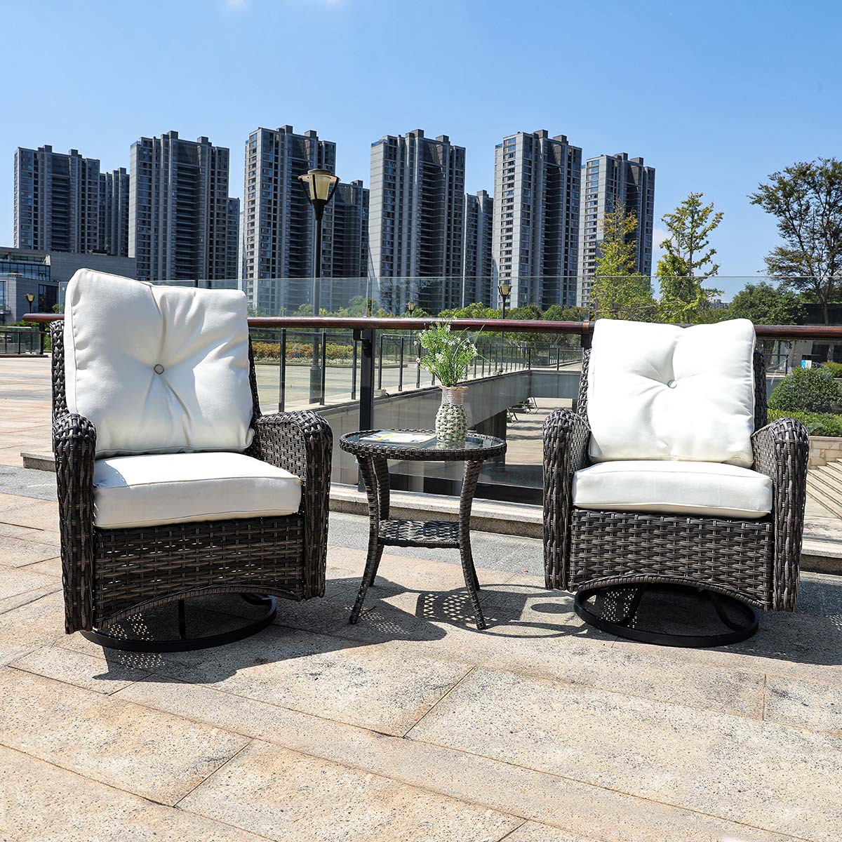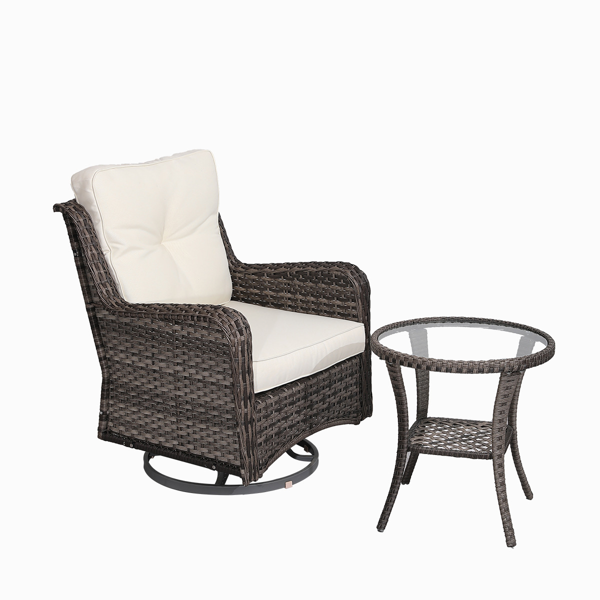 야외 등나무 테이블과 의자 회전 소파 의자 3 종 세트 야외 레저 등나무 가구 세트 회전 의자 3 종 세트