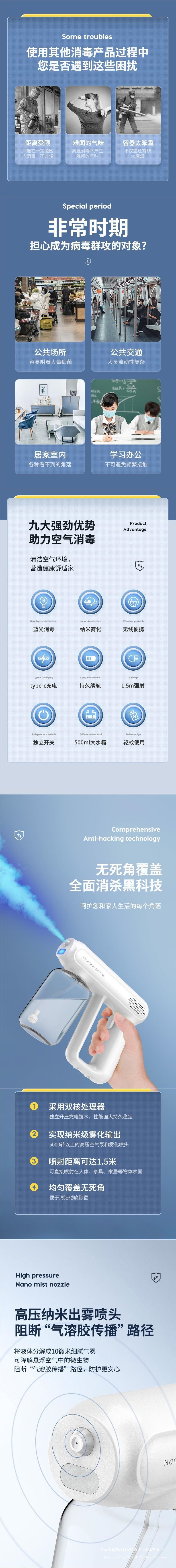 전염병 예방 휴대용 알코올 소독 총 분무기 USB 충전 나노 알코올 84 살균 공기 청정기스토어 가기