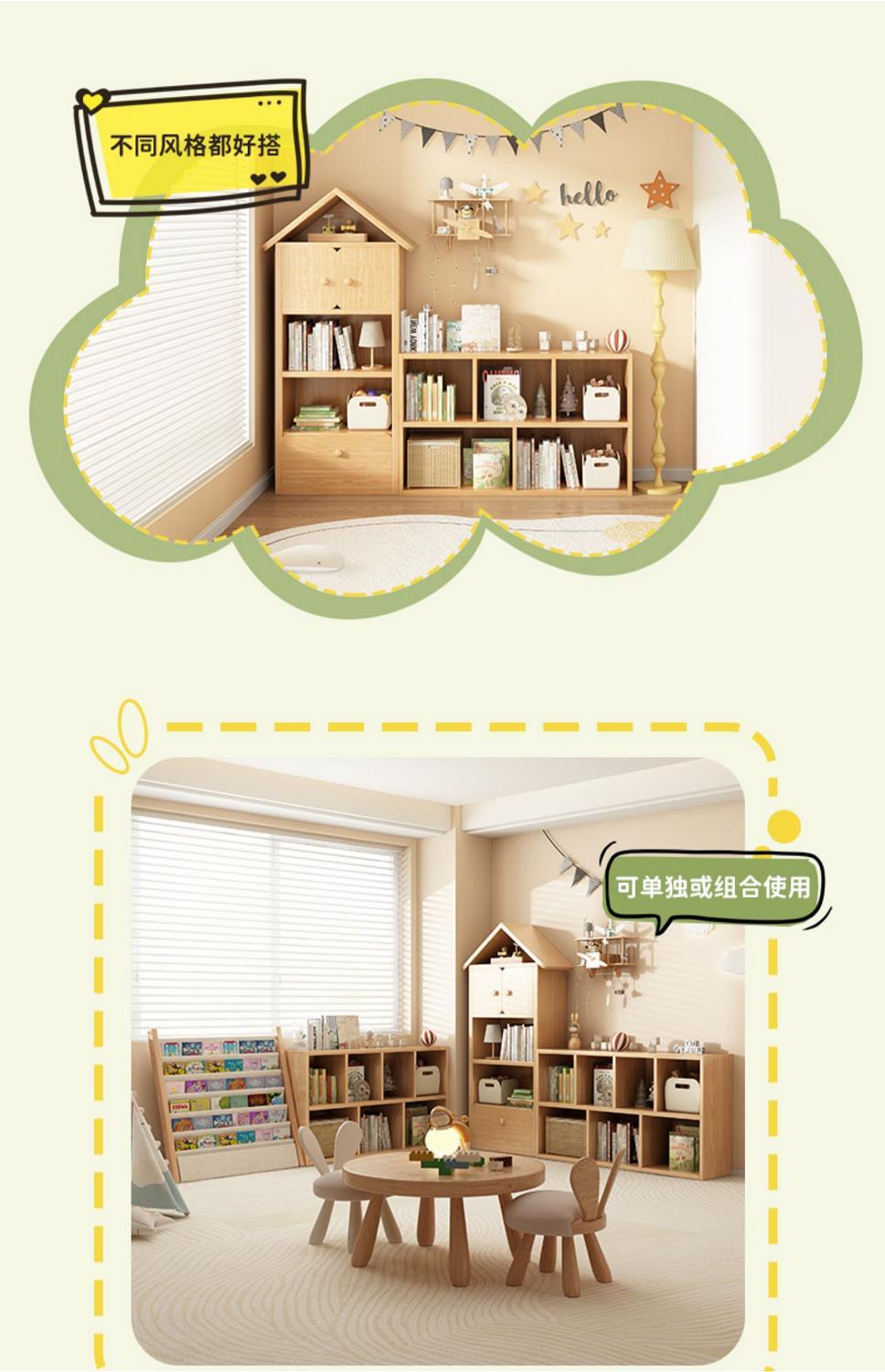 단단한 나무 어린이 책장 바닥 보관 랙 유치원 장난감 책장 무료 조합 독서 지역 조합스토어 가기