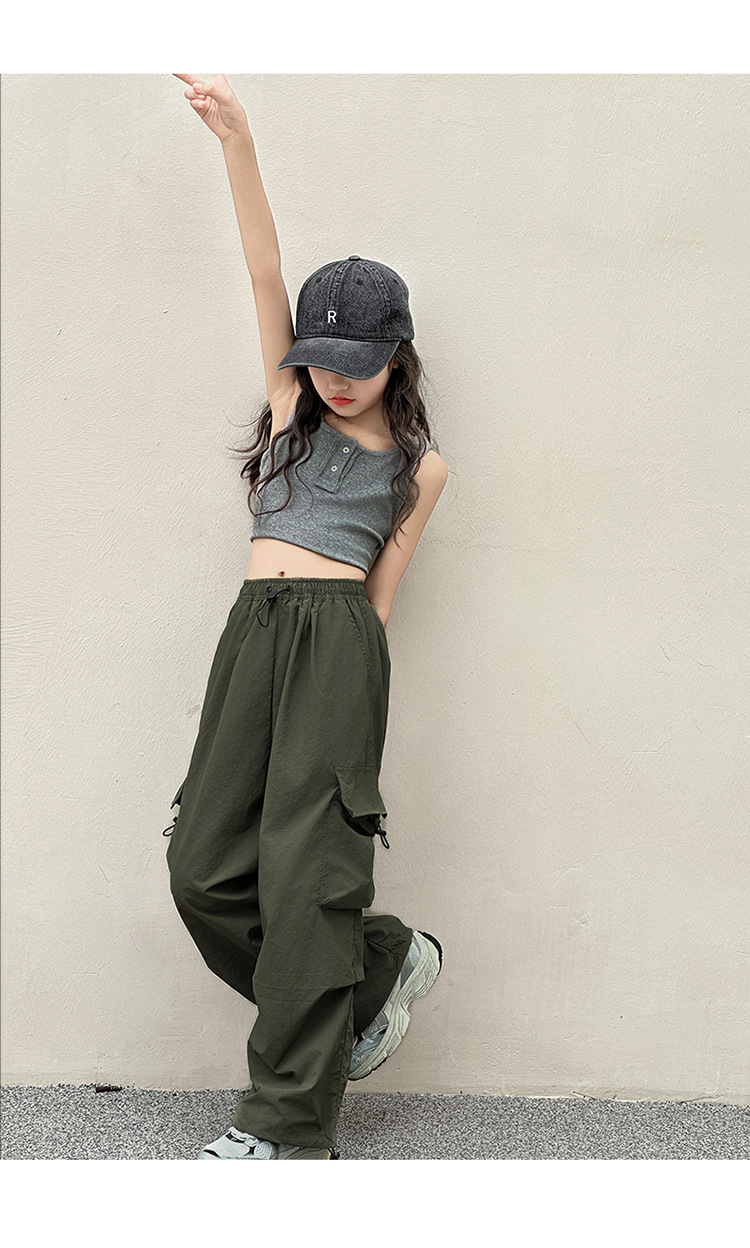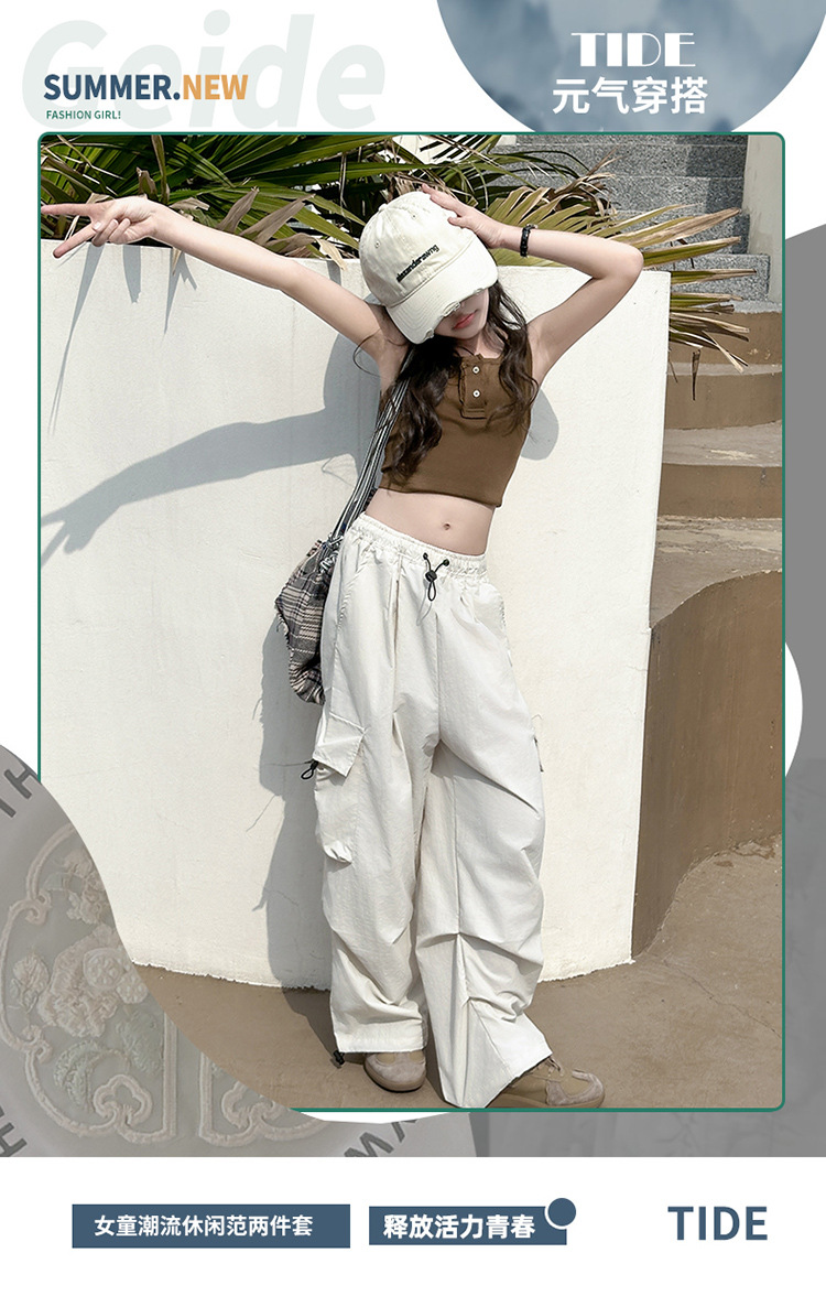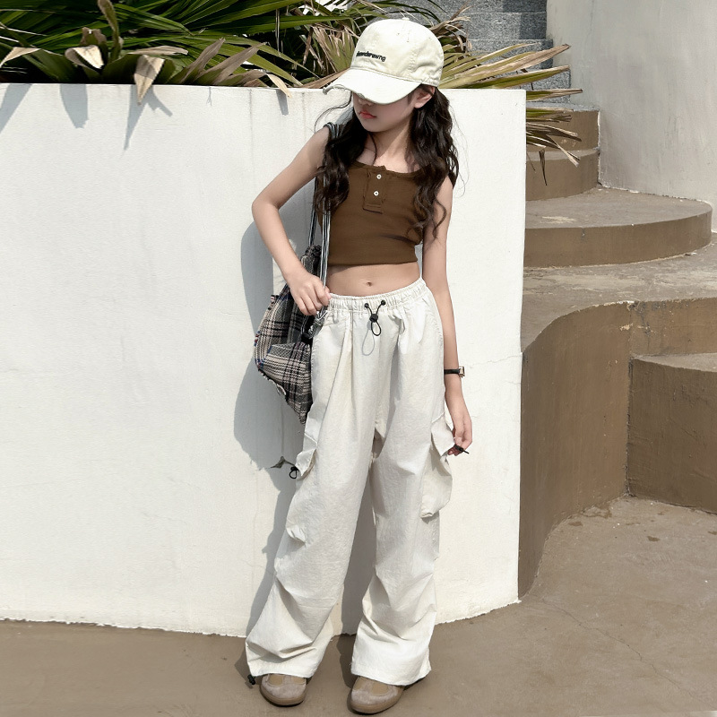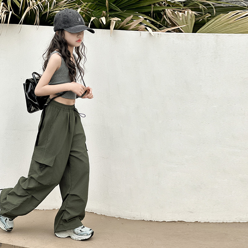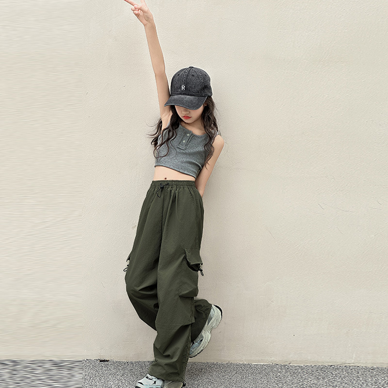 여자 카미솔 울트라 얇은 크록수트 바지 2025 여름 한국 스타일 소녀의 세련된 멋진 힙합 스트리트 댄스 와이드 레그 바지스토어 가기