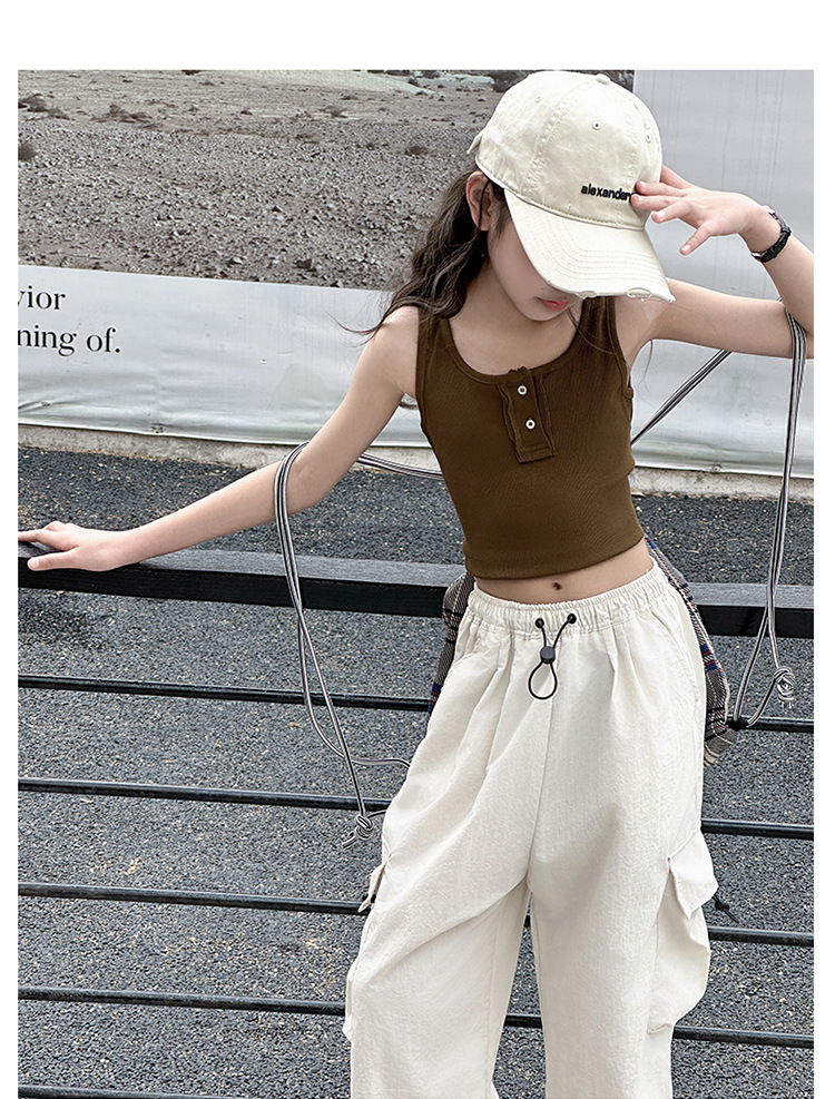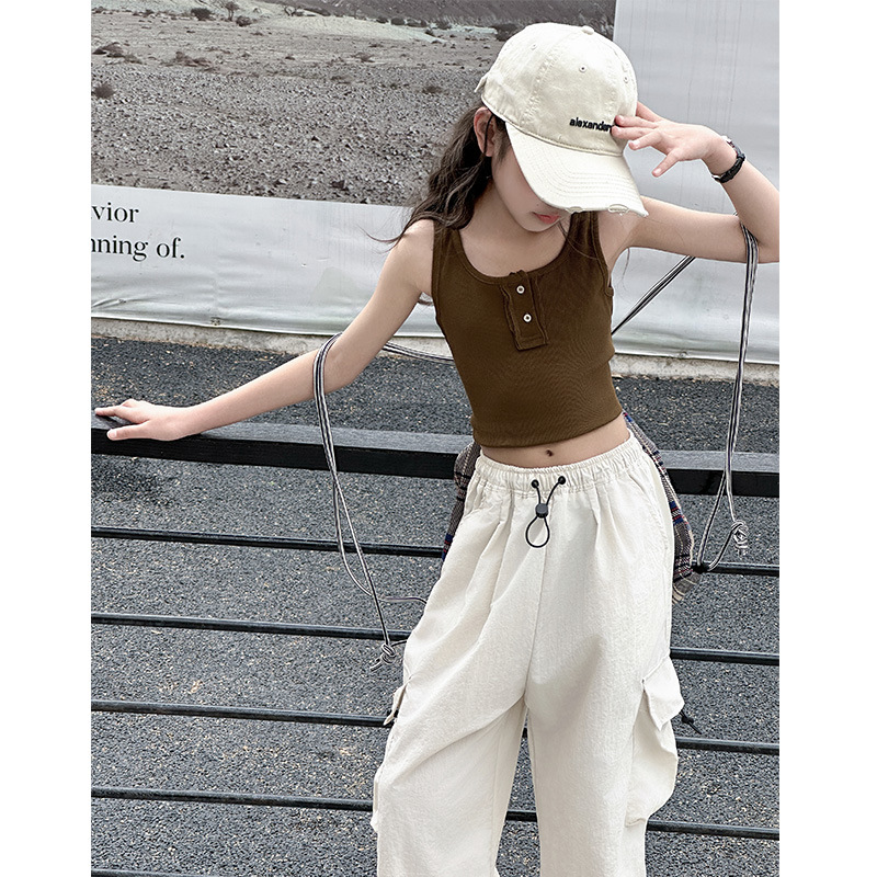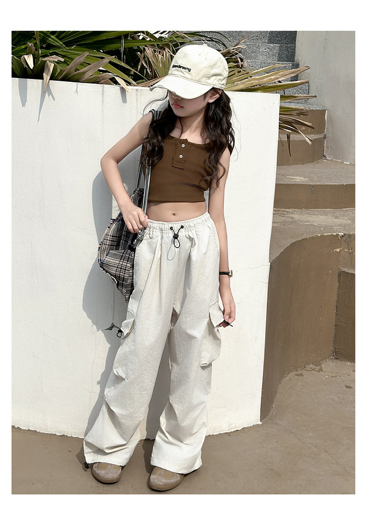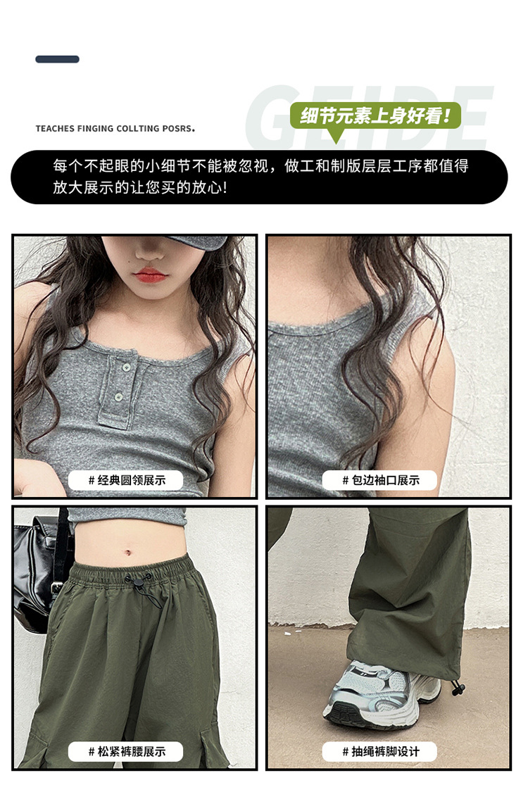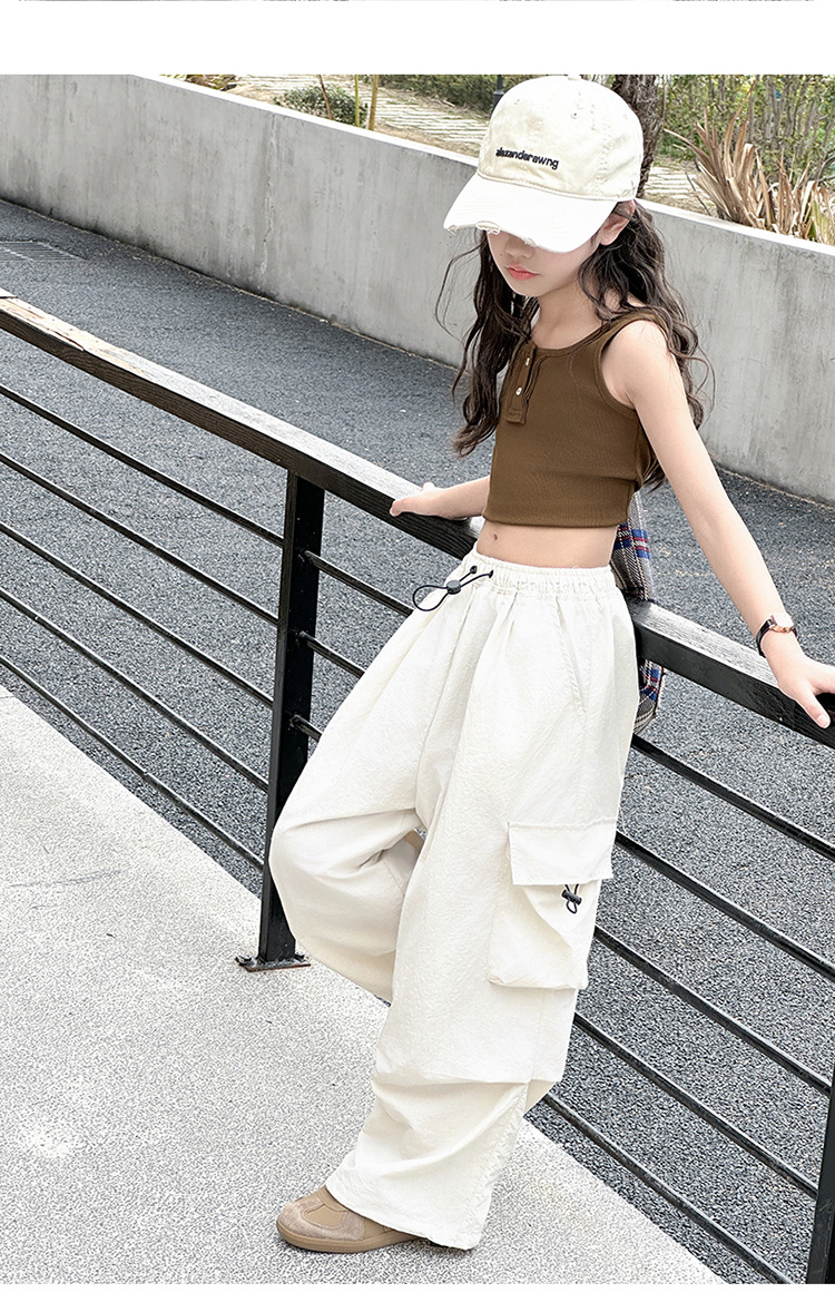 여자 카미솔 울트라 얇은 크록수트 바지 2025 여름 한국 스타일 소녀의 세련된 멋진 힙합 스트리트 댄스 와이드 레그 바지스토어 가기