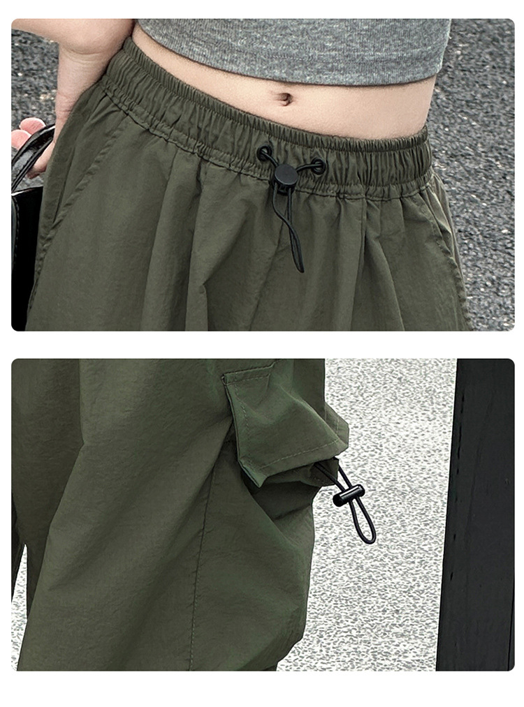 여자 카미솔 울트라 얇은 크록수트 바지 2025 여름 한국 스타일 소녀의 세련된 멋진 힙합 스트리트 댄스 와이드 레그 바지