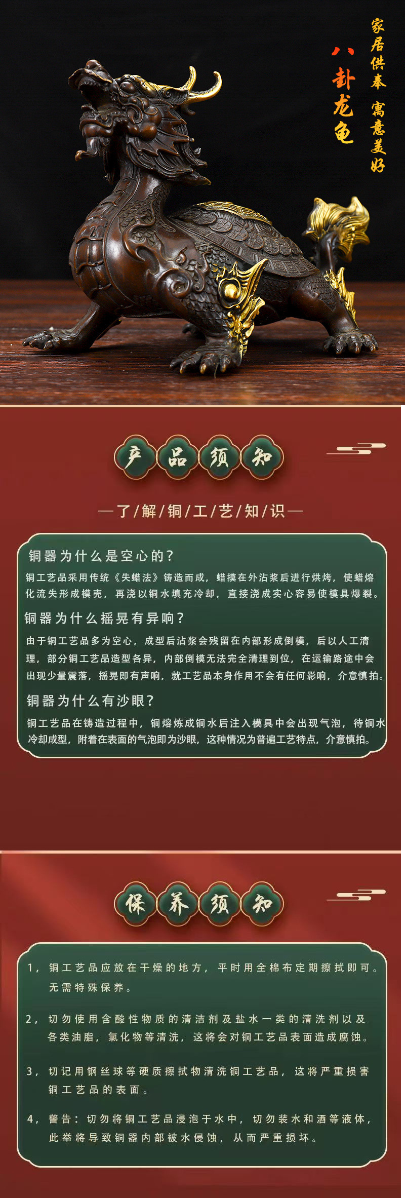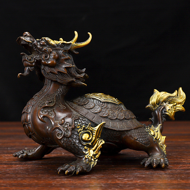 순수 구리 Bagua 드래곤 거북 장식 황동 타운 하우스 드래곤 헤드 럭키 홈 거실 사무실 데스크탑 장식 공예