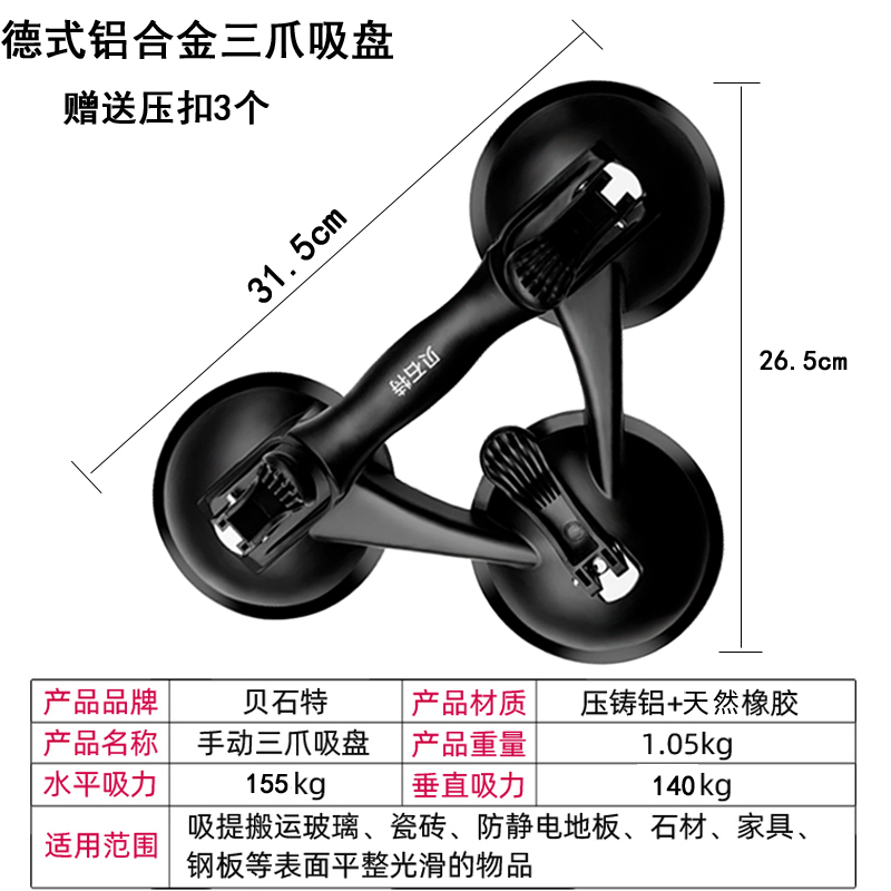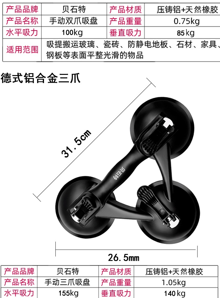 • 강화되고 두꺼워진 세 발톱 알루미늄 합금 흡입 컵(흡입력