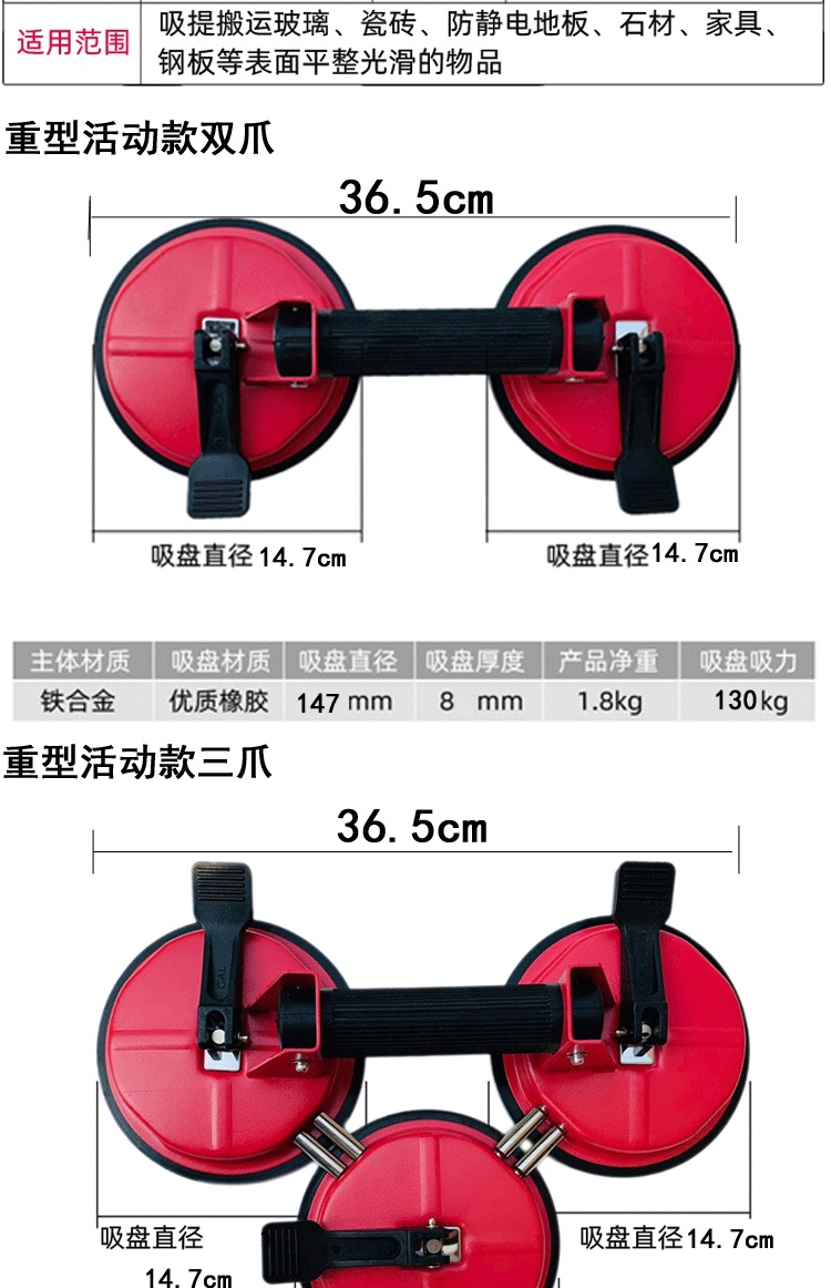 • 강화되고 두꺼워진 이중 발톱 알루미늄 합금 흡입 컵(흡입