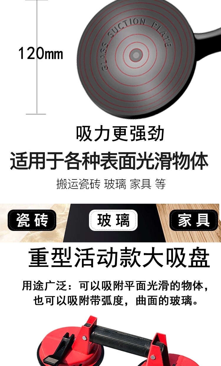 무거운 의무 흡입 리프터 유리 흡입 컵 싱글 더블 클로 진공 알루미늄 합금 타일 바닥 취급 및 고정 도구스토어 가기