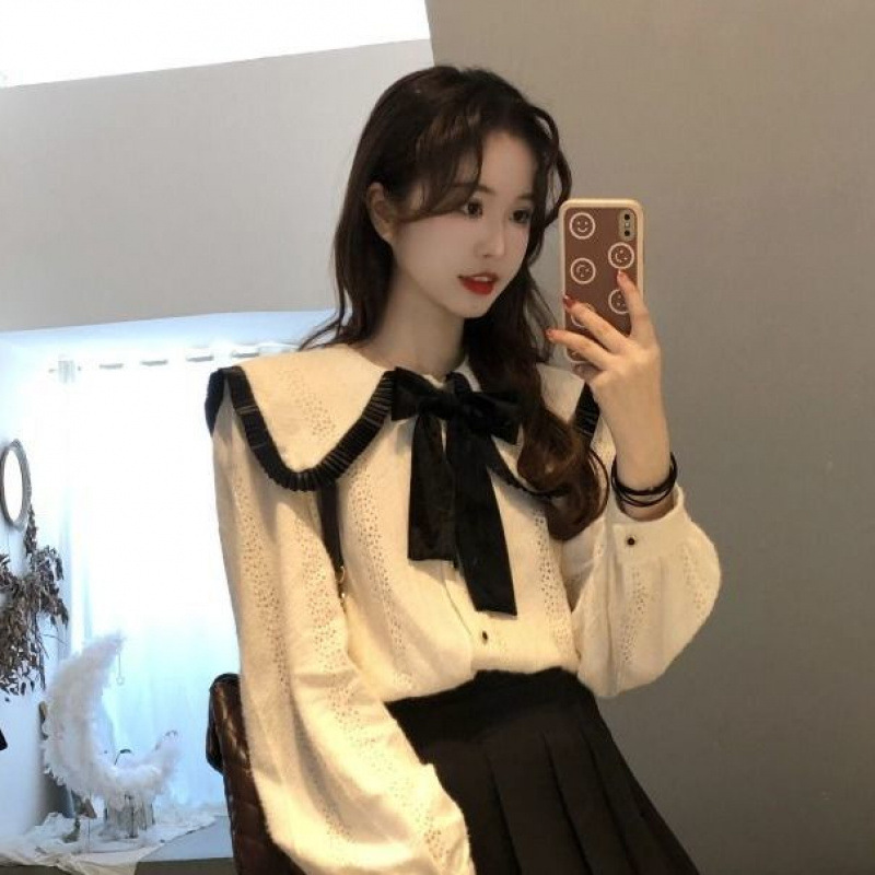주름 치마 세트 여성 봄과 가을 투피스 원피스 인형 칼라 니트 셔츠 아카데미 스타일스토어 가기