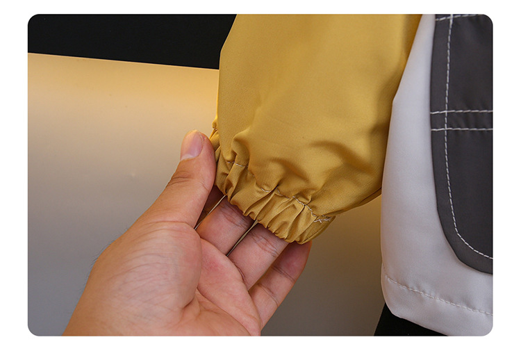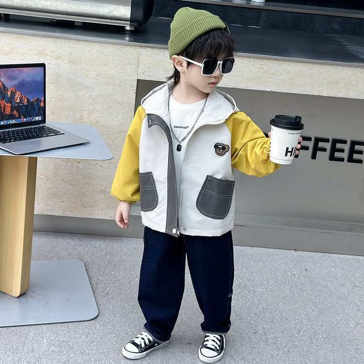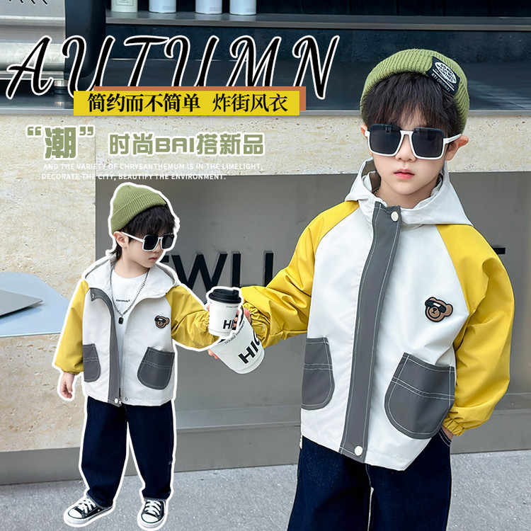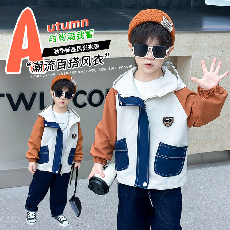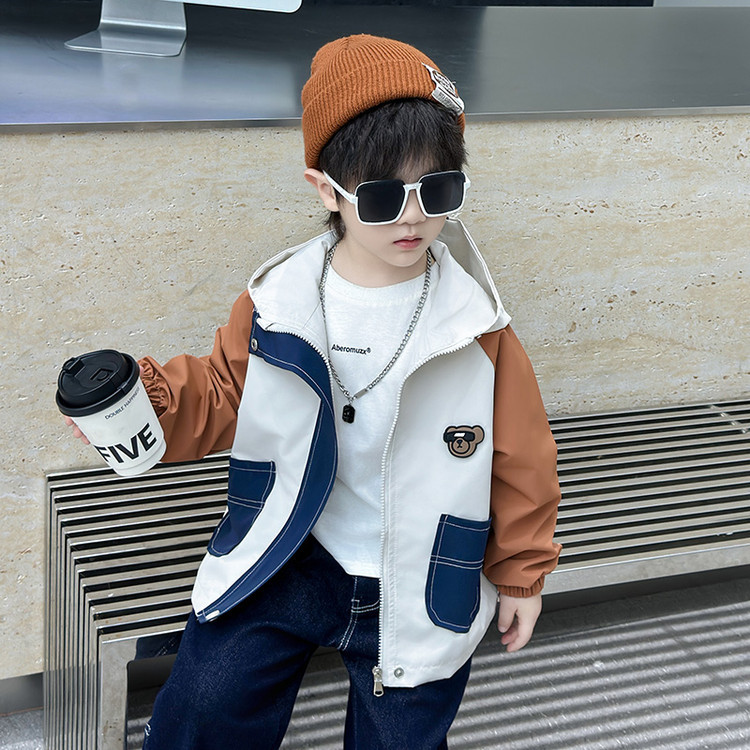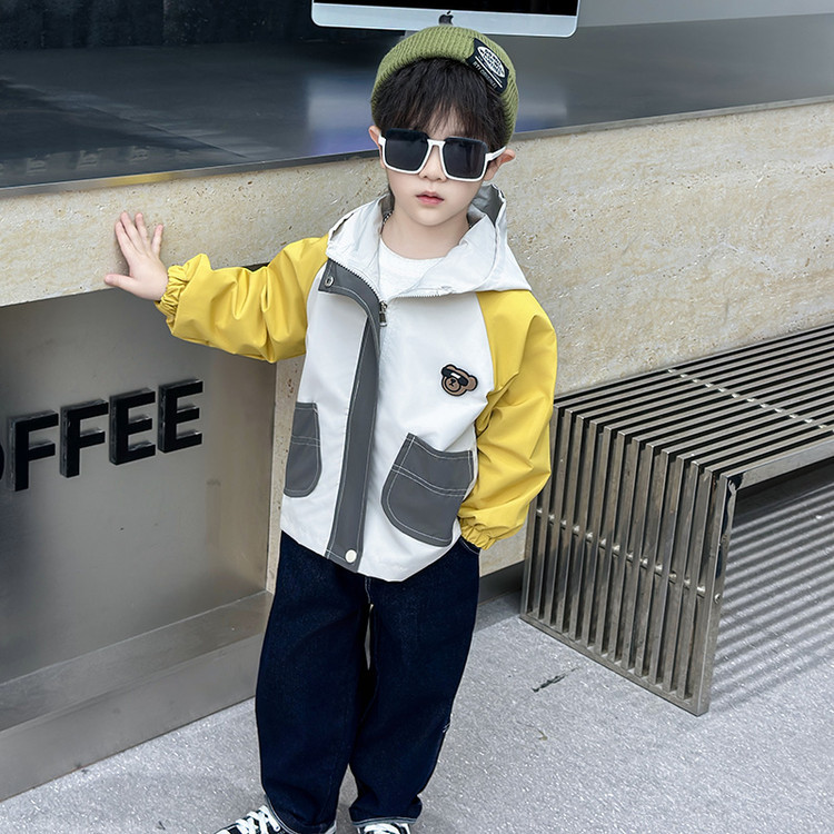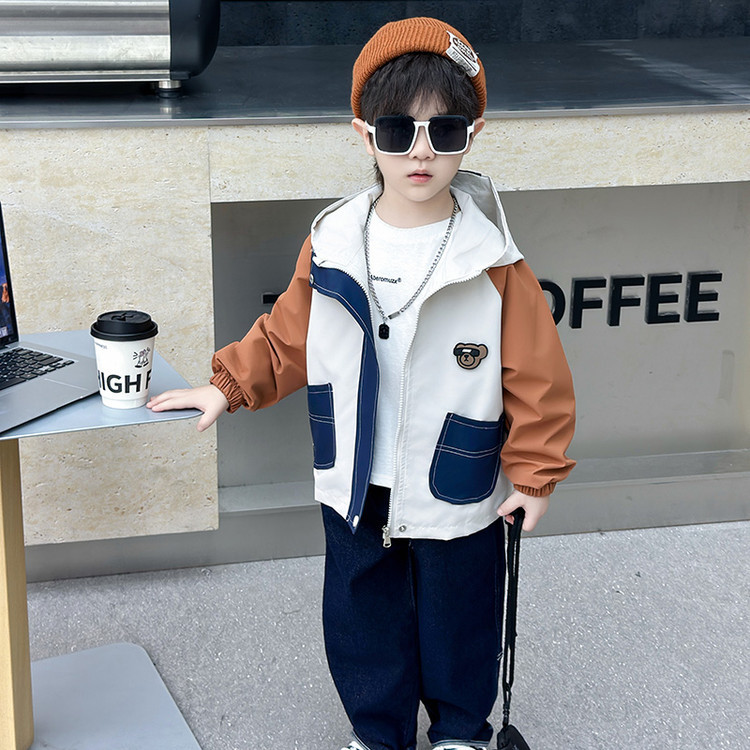 7708 남학생 하이 칼라 재킷 코트 콘트라스트 컬러 아웃팅 트렌치 코트 2025 새로운 아동복 중소 어린이 후드스토어 가기