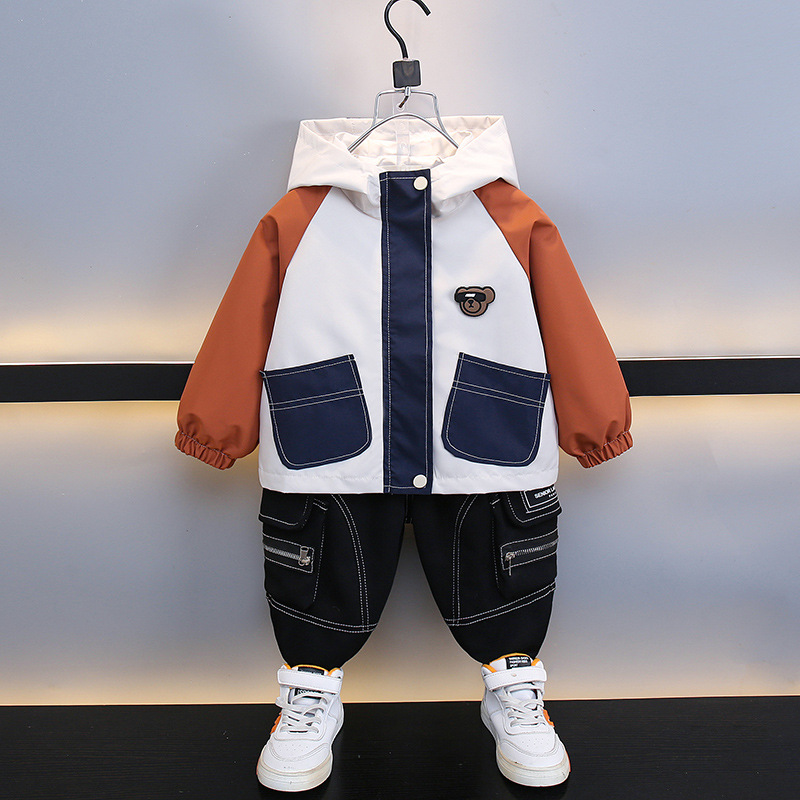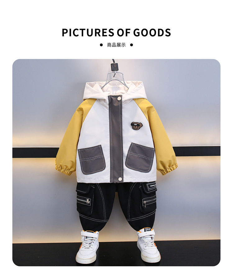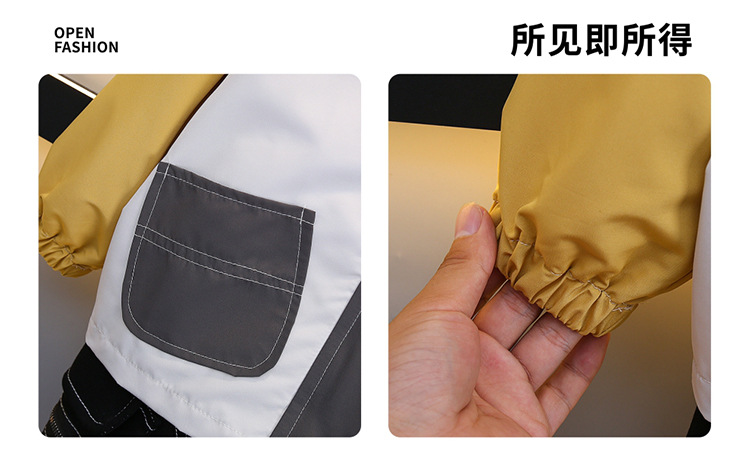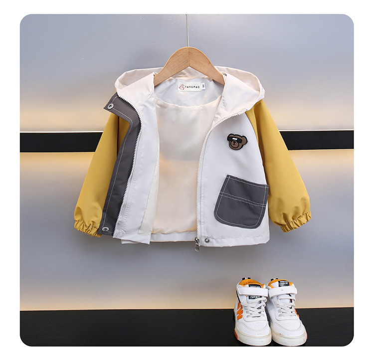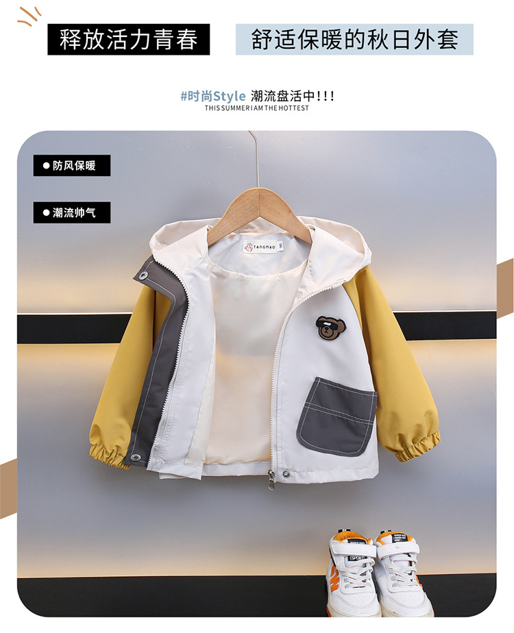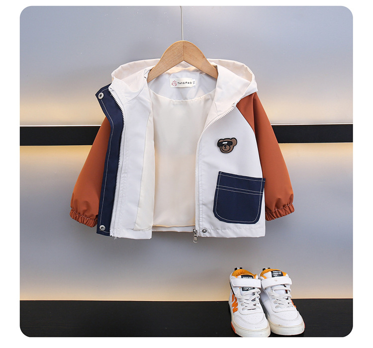 7708 남학생 하이 칼라 재킷 코트 콘트라스트 컬러 아웃팅 트렌치 코트 2025 새로운 아동복 중소 어린이 후드스토어 가기